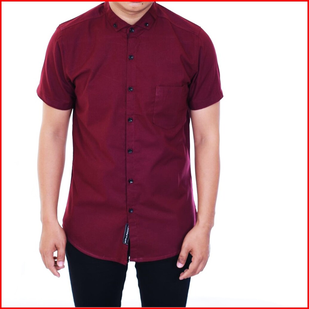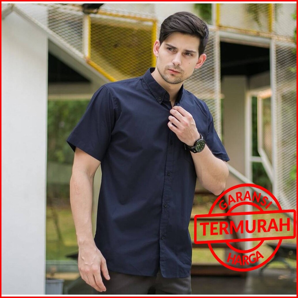 Credomenstore Short Simple Black Premium M-xl Kemeja Polos Lengan Pendek