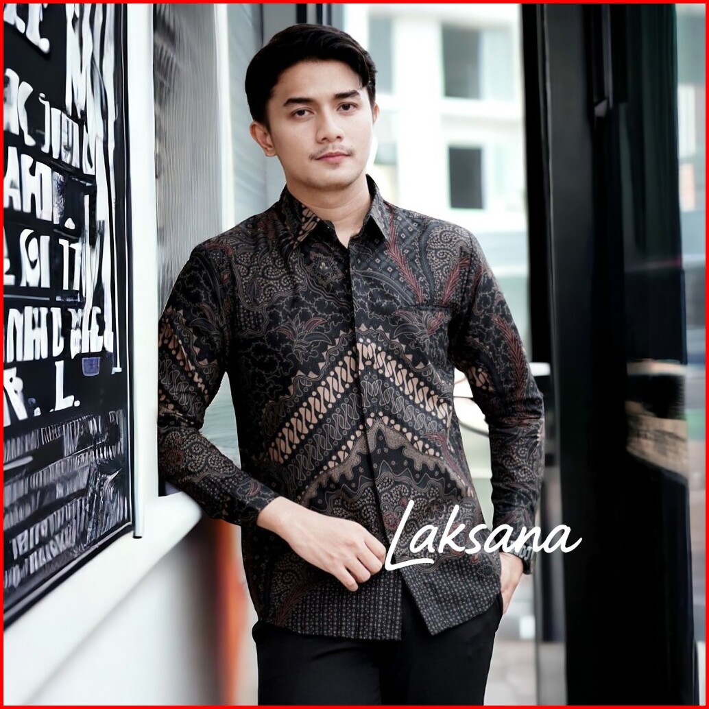 Laksana - Kemeja Baju Batik Pria Cowok Cowo Lengan Panjang Trendy Modern Pekalongan Motif Sawunggali