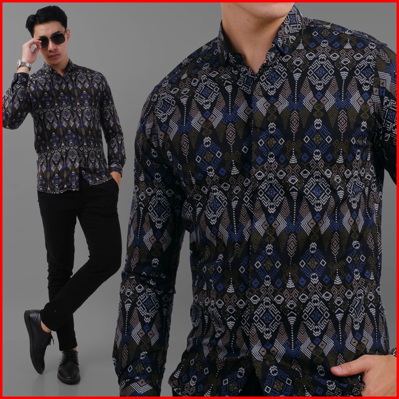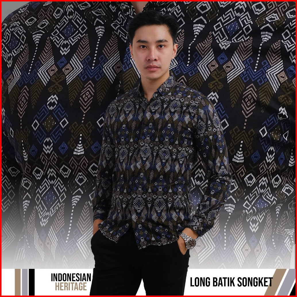 Dgm Fashion Kemeja Batik Pria Lengan Panjang Songket Bahan Stretch Premium 002 H