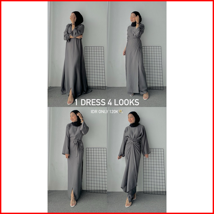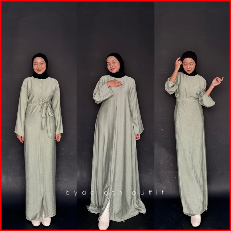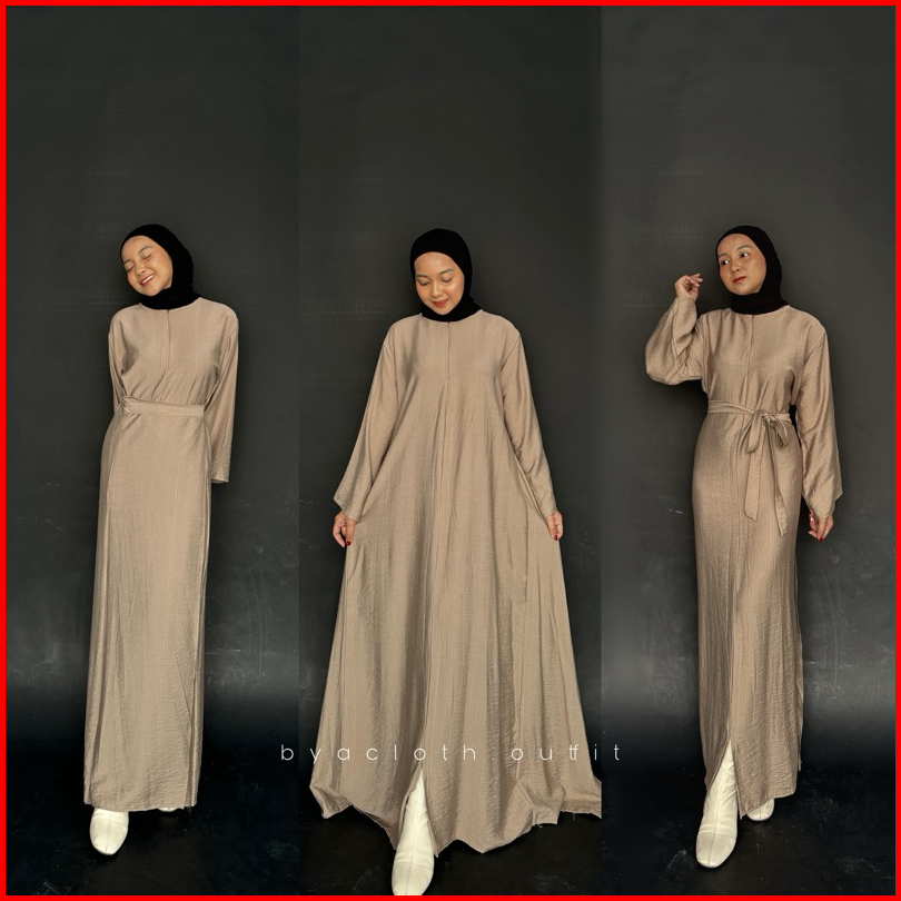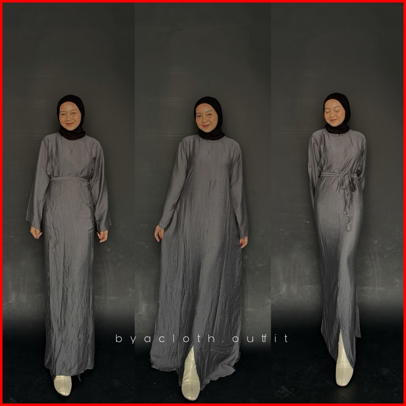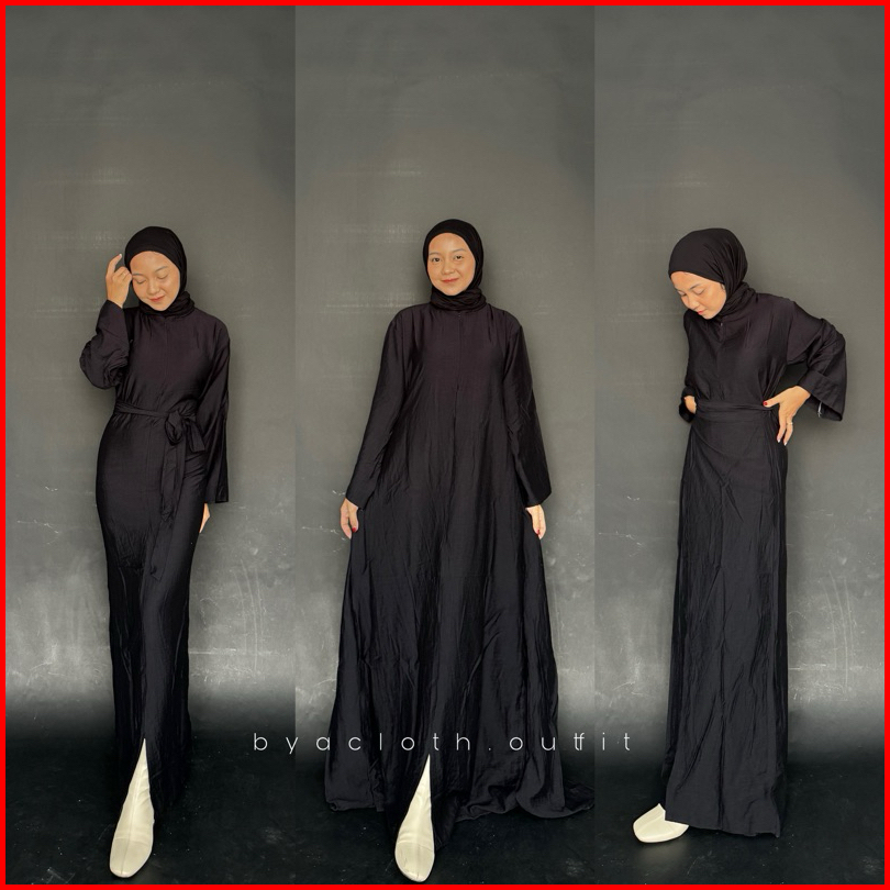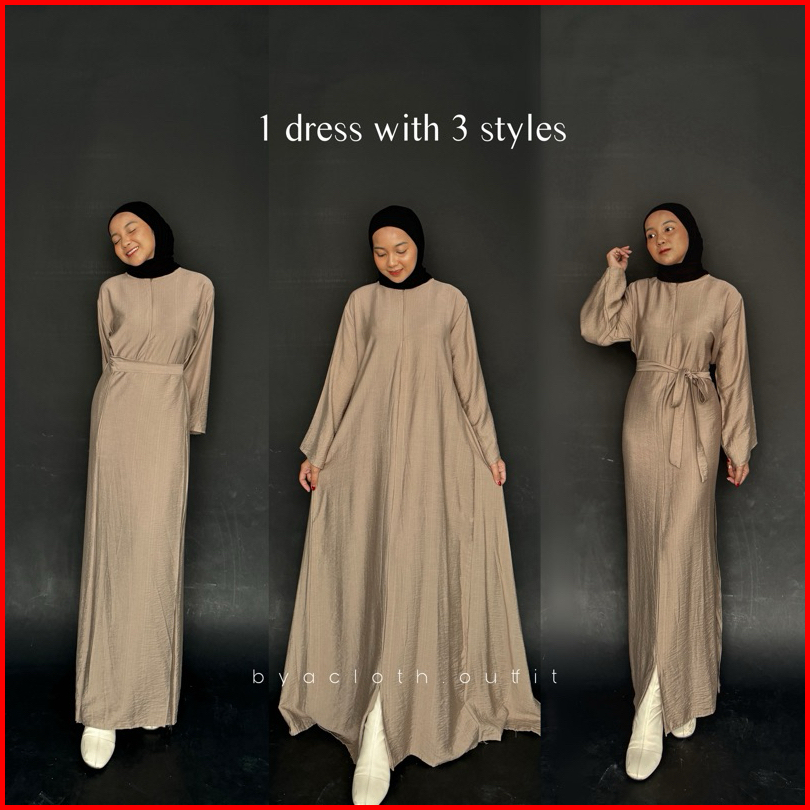Byacloth - Irvi Wrap 3in1 Shirt Dress Tali Maxi Dress Panjang Lilit Dress Wanita Polos Baju Lebaran