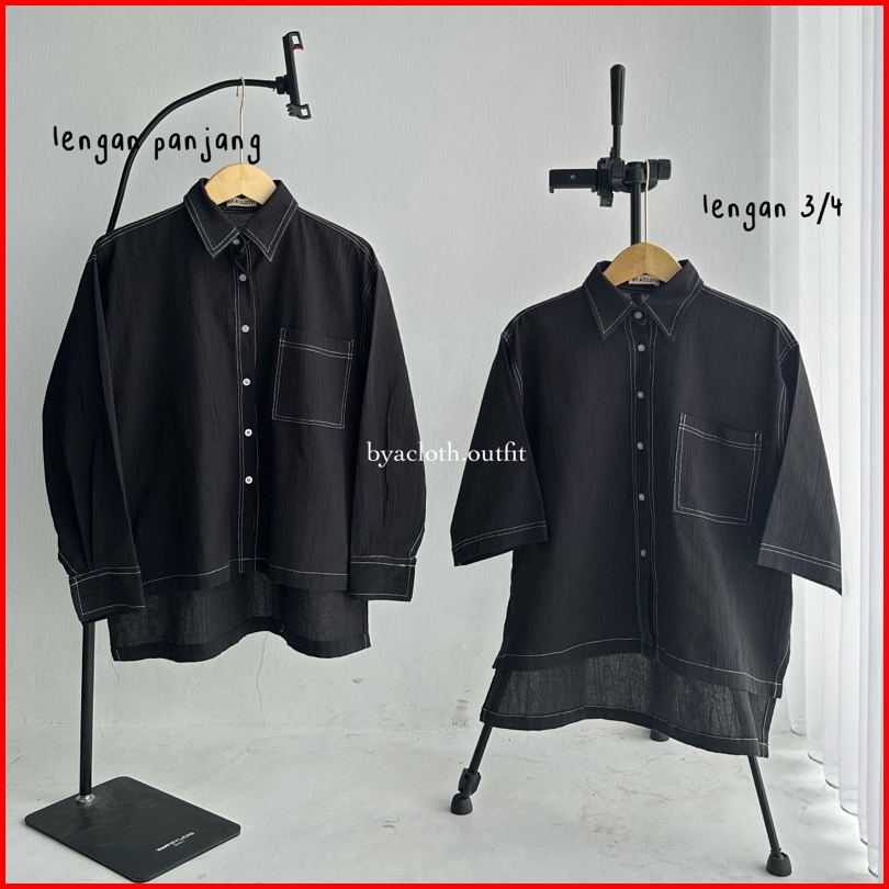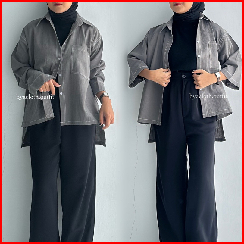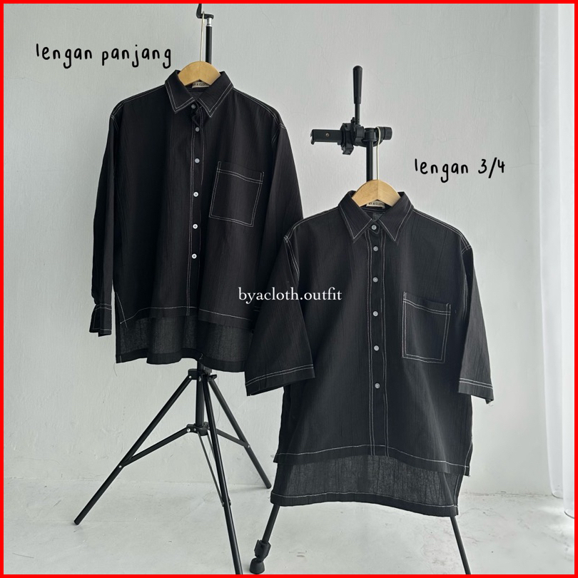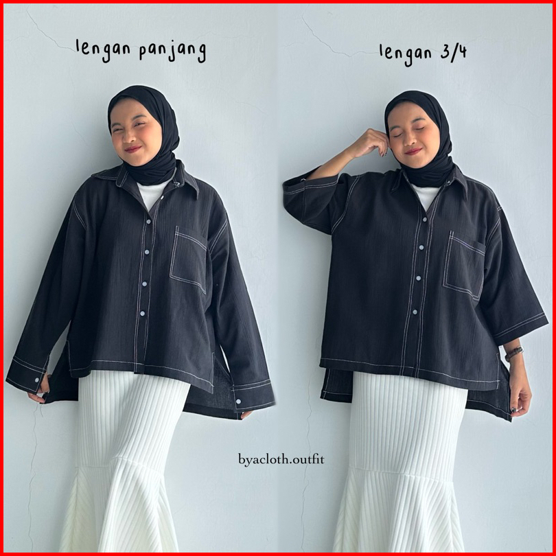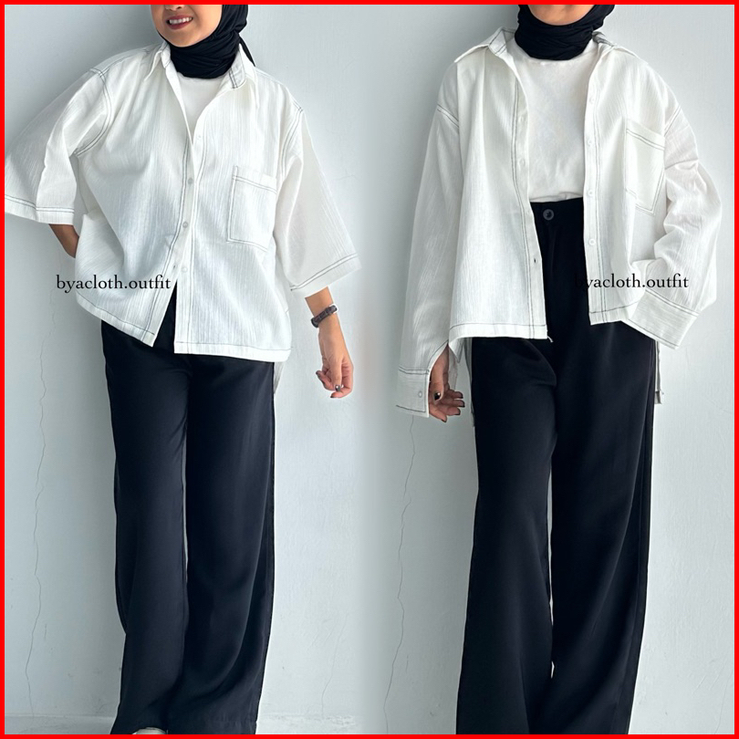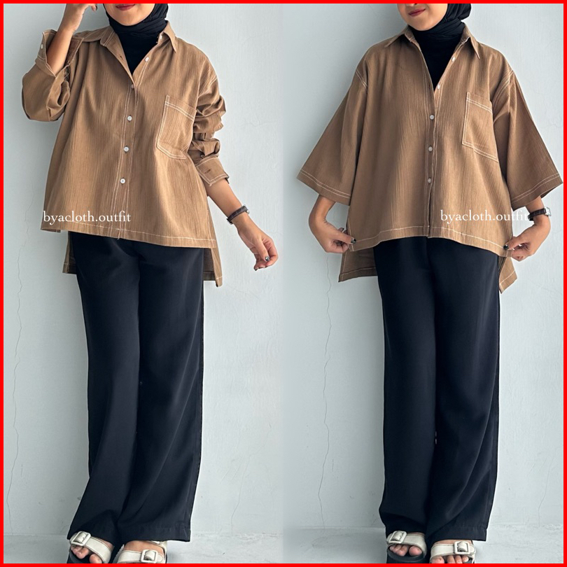 Byacloth - Ceri Kemeja Oversized Linen Wanita - Linen Crinkle Shirt - Atasan Wanita Lengan Panjang