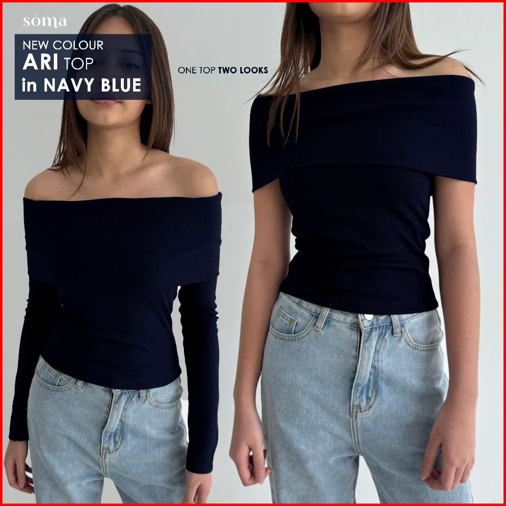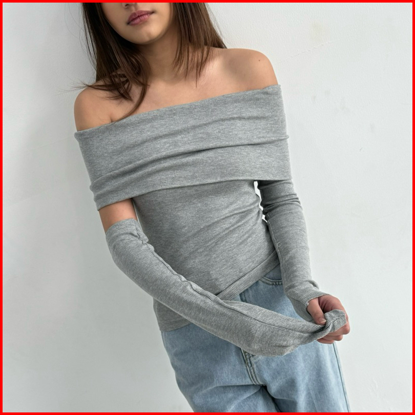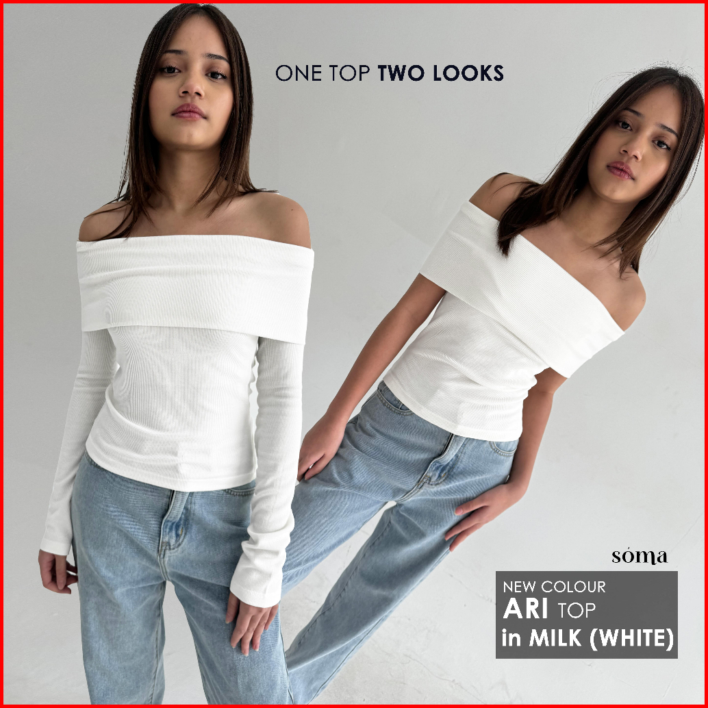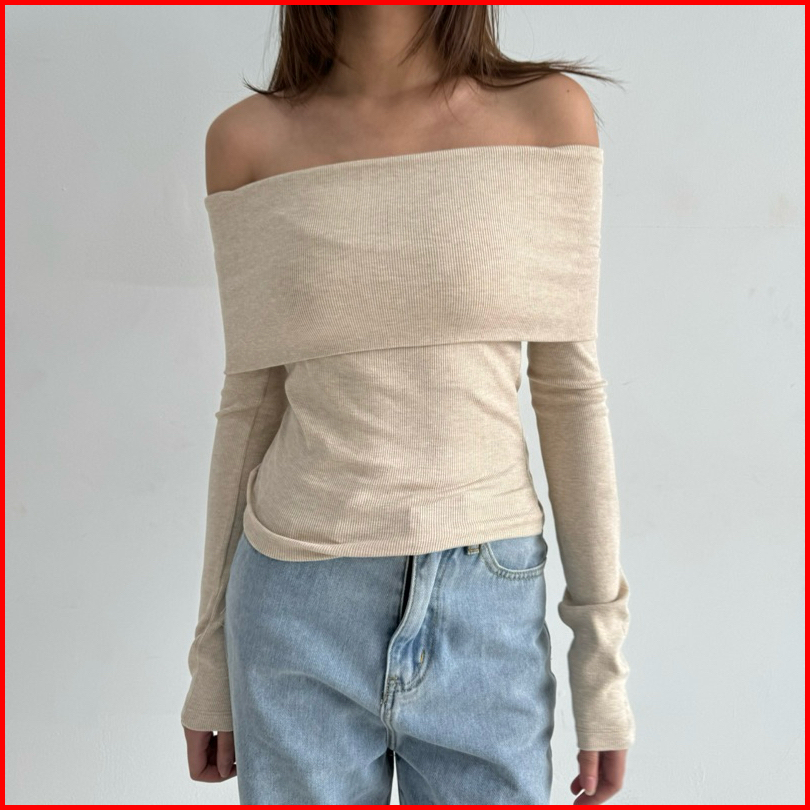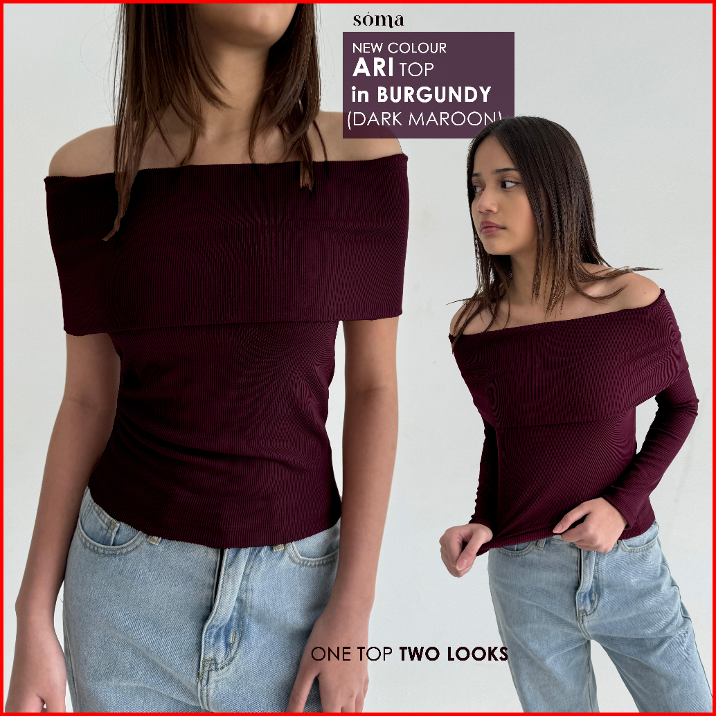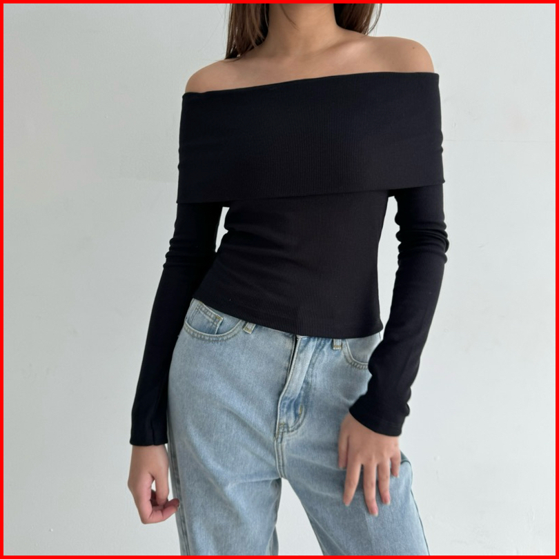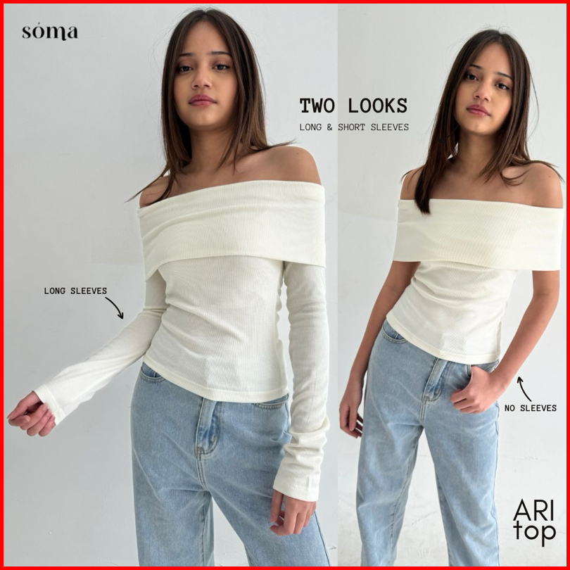 Ari Top Atasan Knit Wanita Off Shoulder Korean Top Basic Baju Summer Knit Rib Lengan Panjang Long Short Sleeve Soma