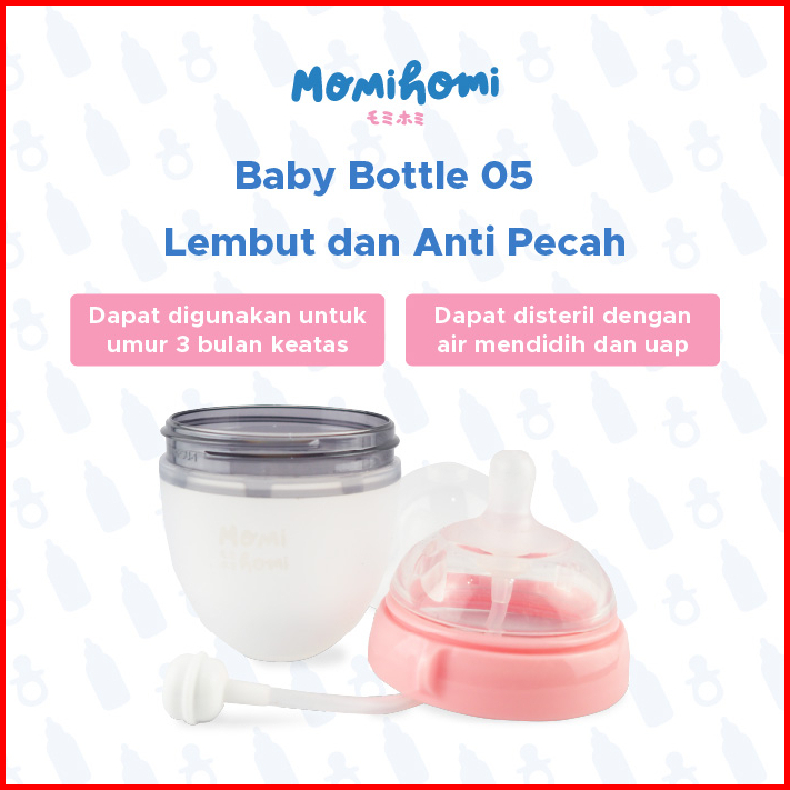 Momi Homi Authorized S05 Premium Botol Dot Silikon 150ml 180ml 250ml Botol Susu Bayi Wide Neck Silicone Food Grade Tahan