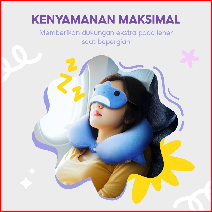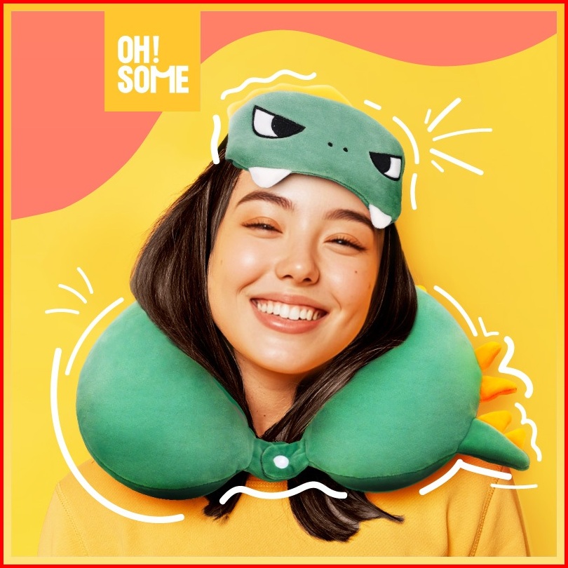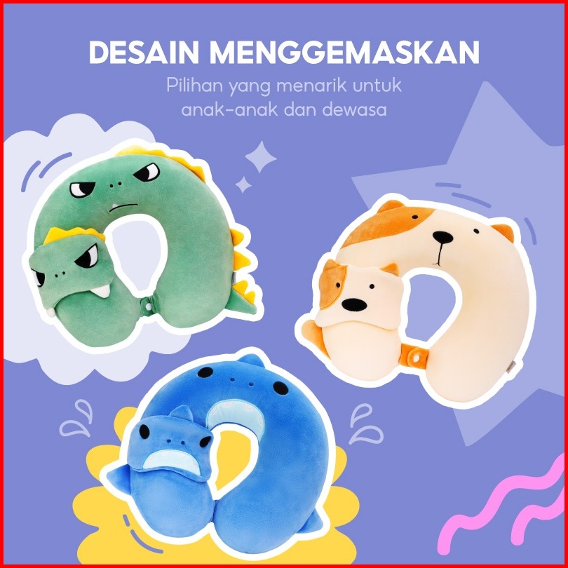 Ohsome Alba Sol Set Masker Mata Dan Bantal Leher Seri Hewan Hiu Dinosaurus Anjing