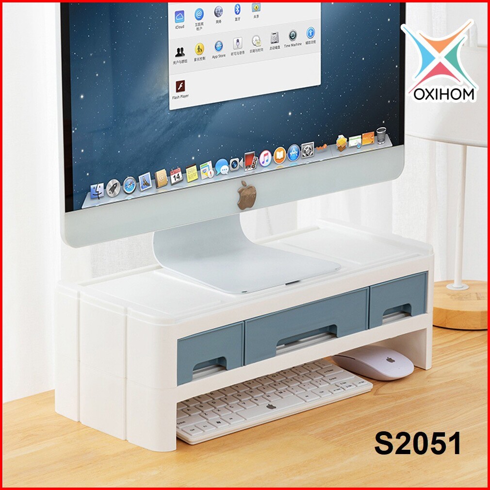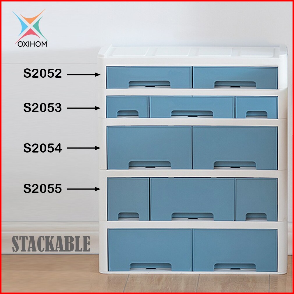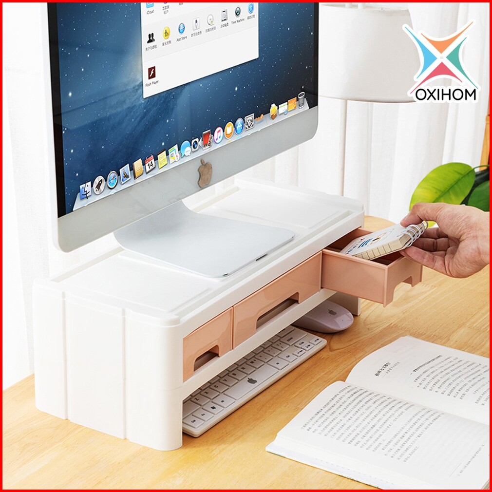 Oxihom Laci Plastik Susun Tempat Kotak Penyimpanan Meja Stand Monitor Drawer Storage Stackable Desktop Organizer