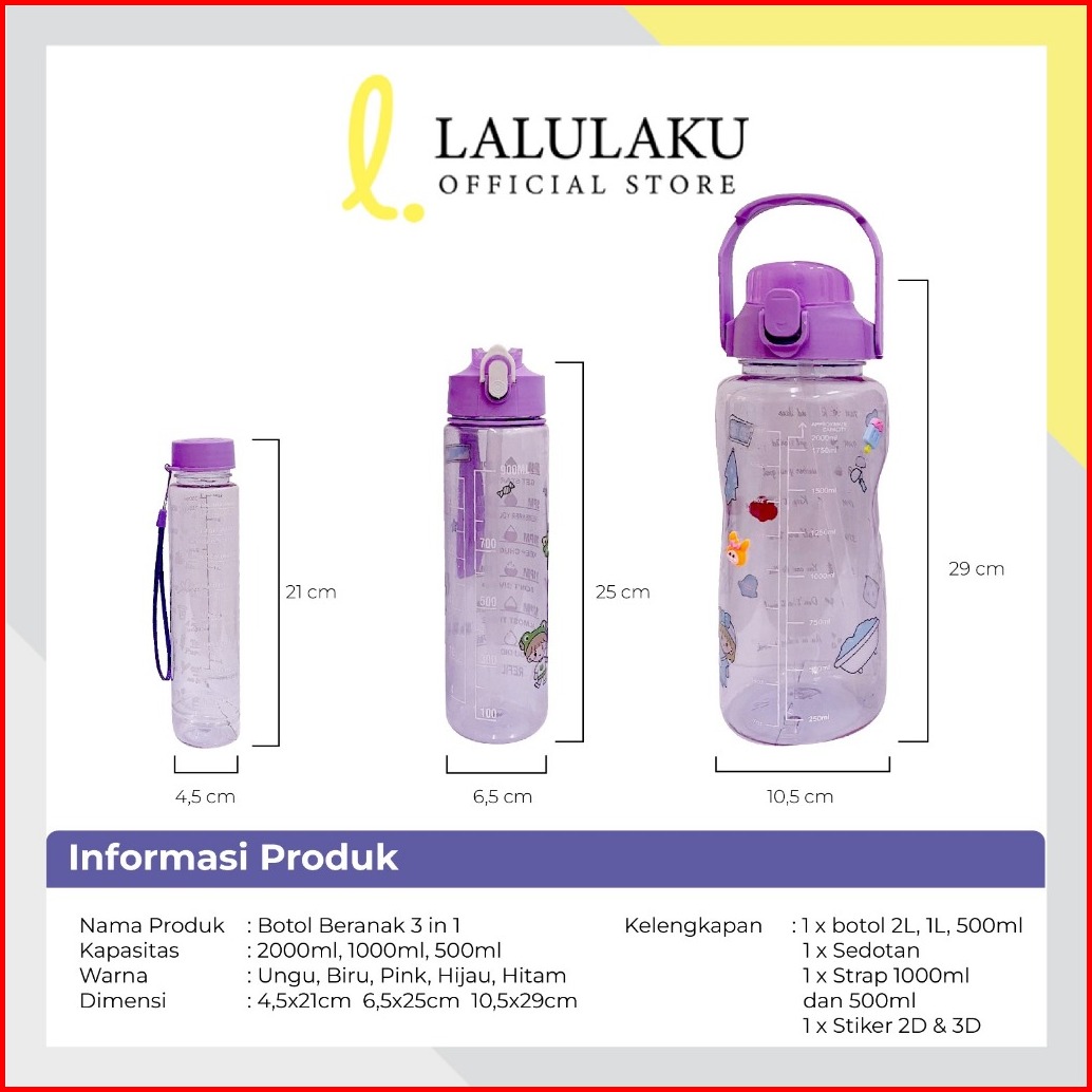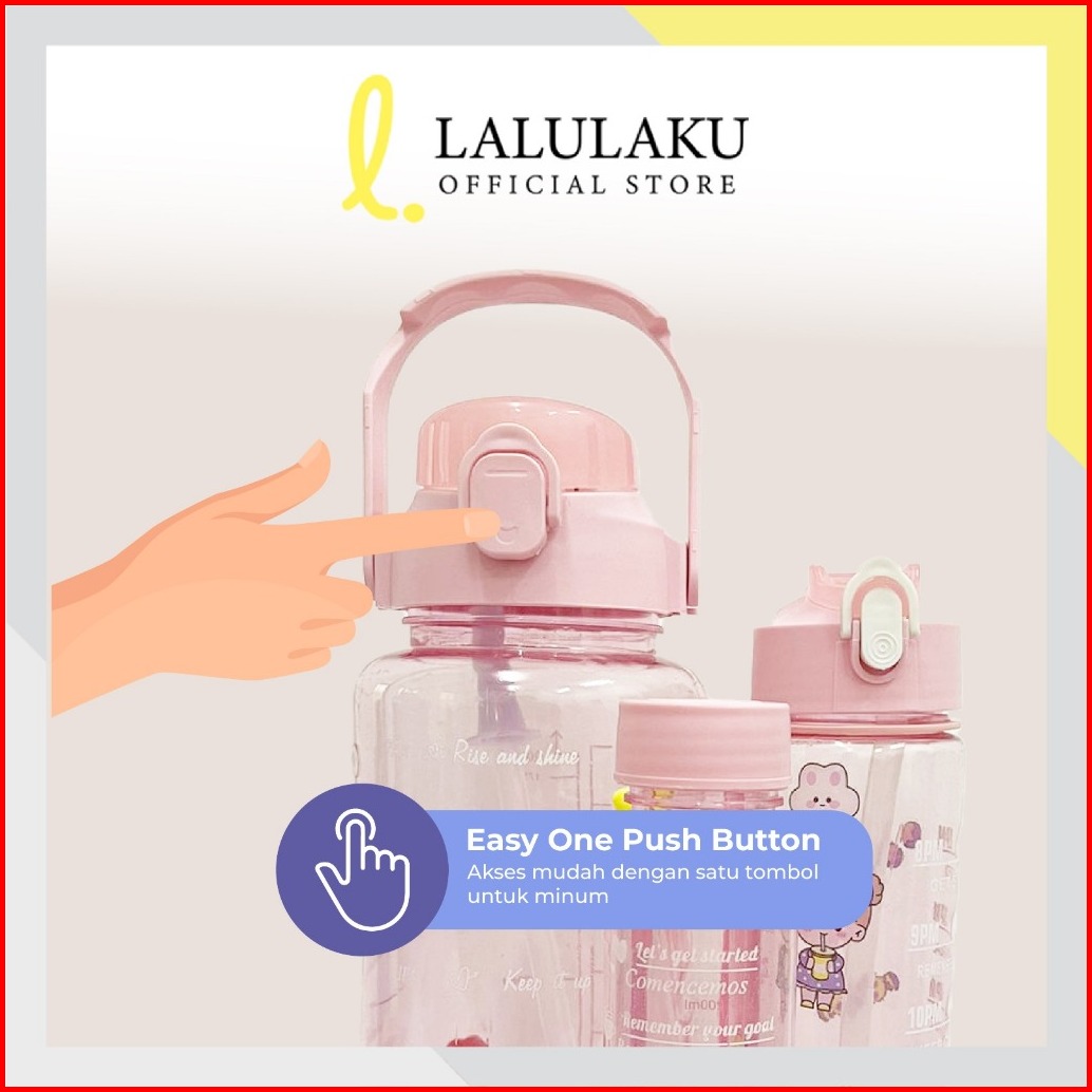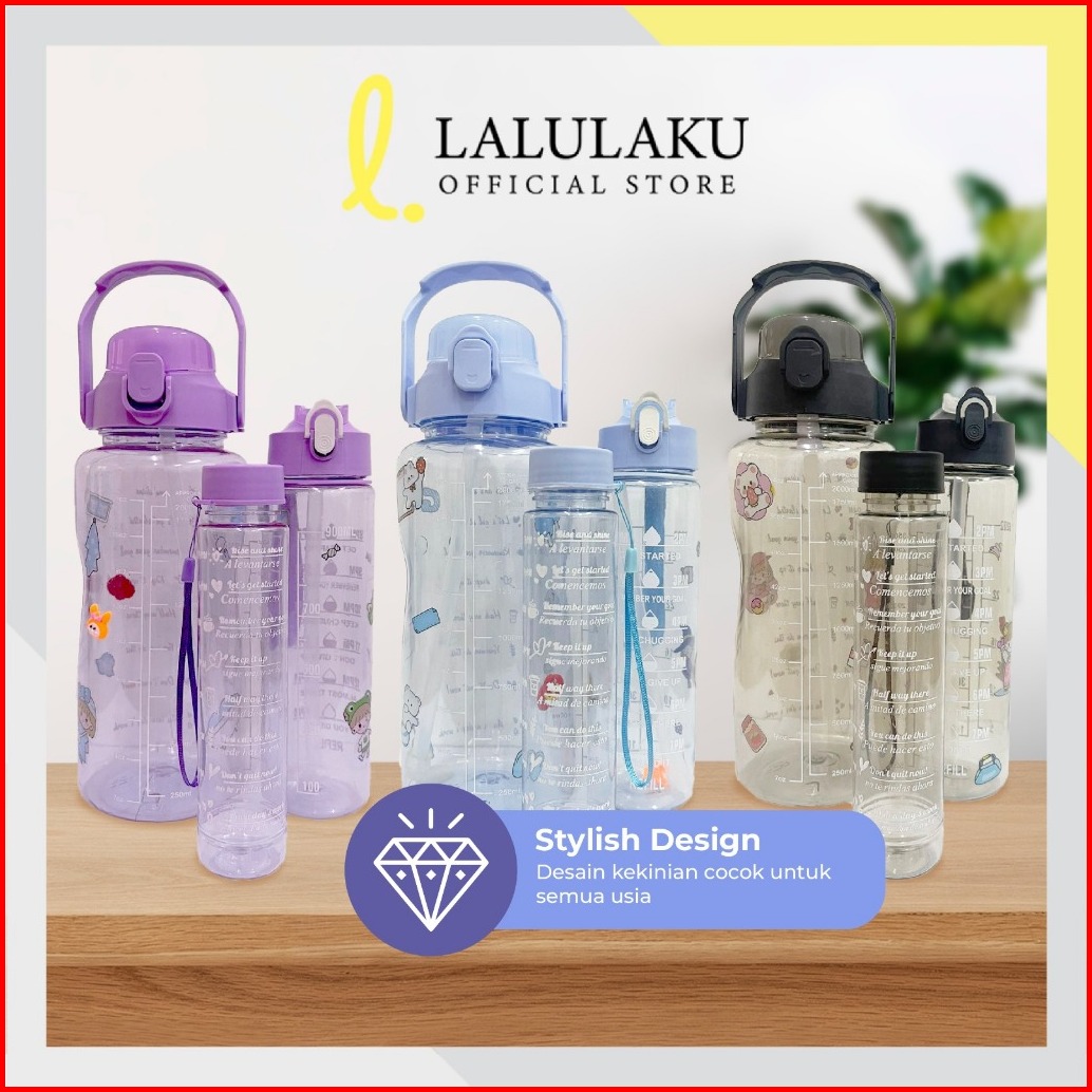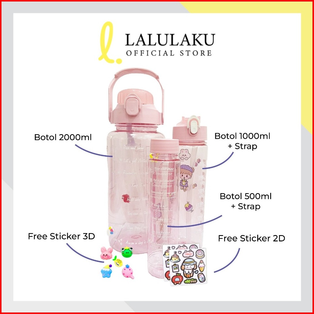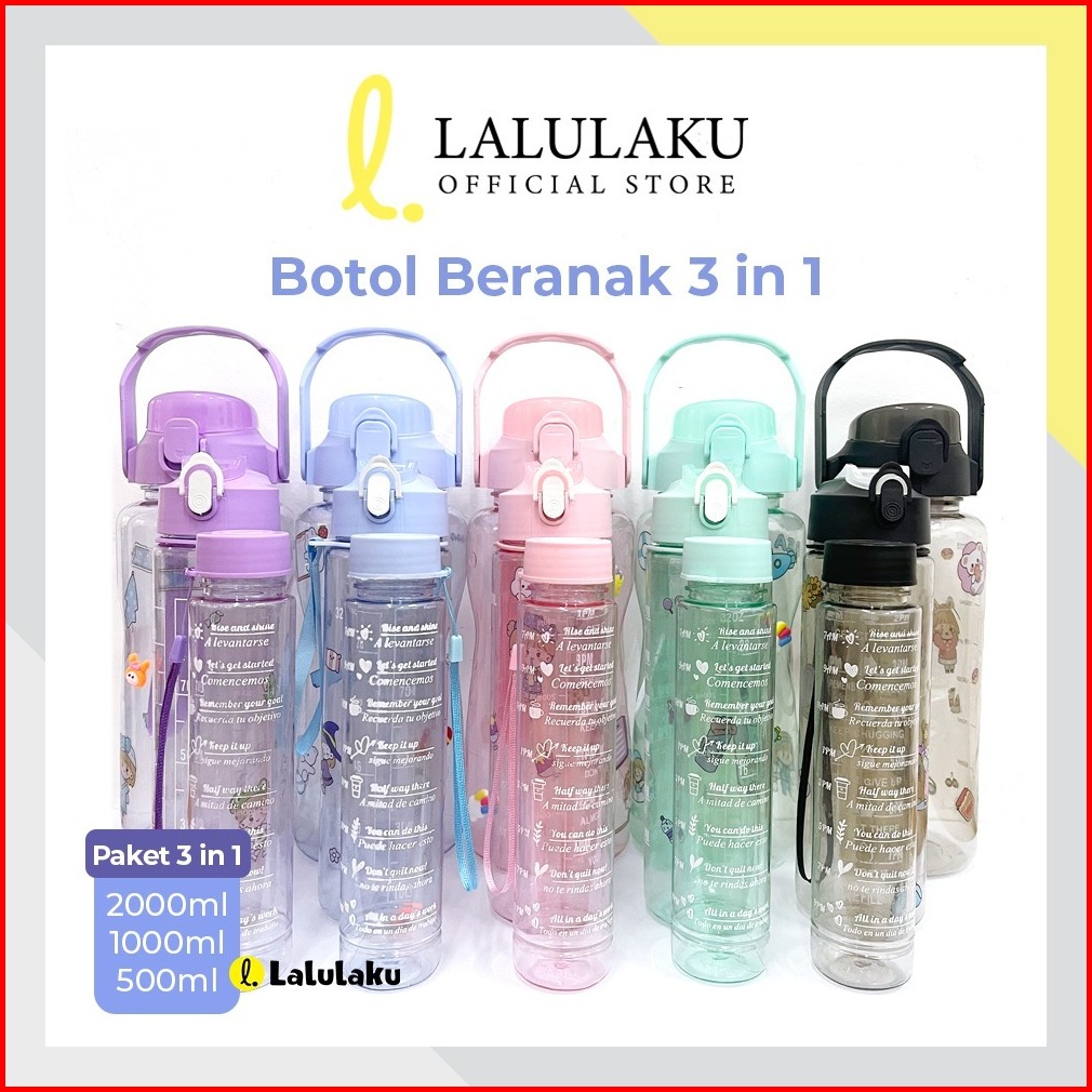 Botol Minum Transparan Viral Botol Motivasi Beranak 3in1 Korea 2 Liter 1000ml 500ml Set