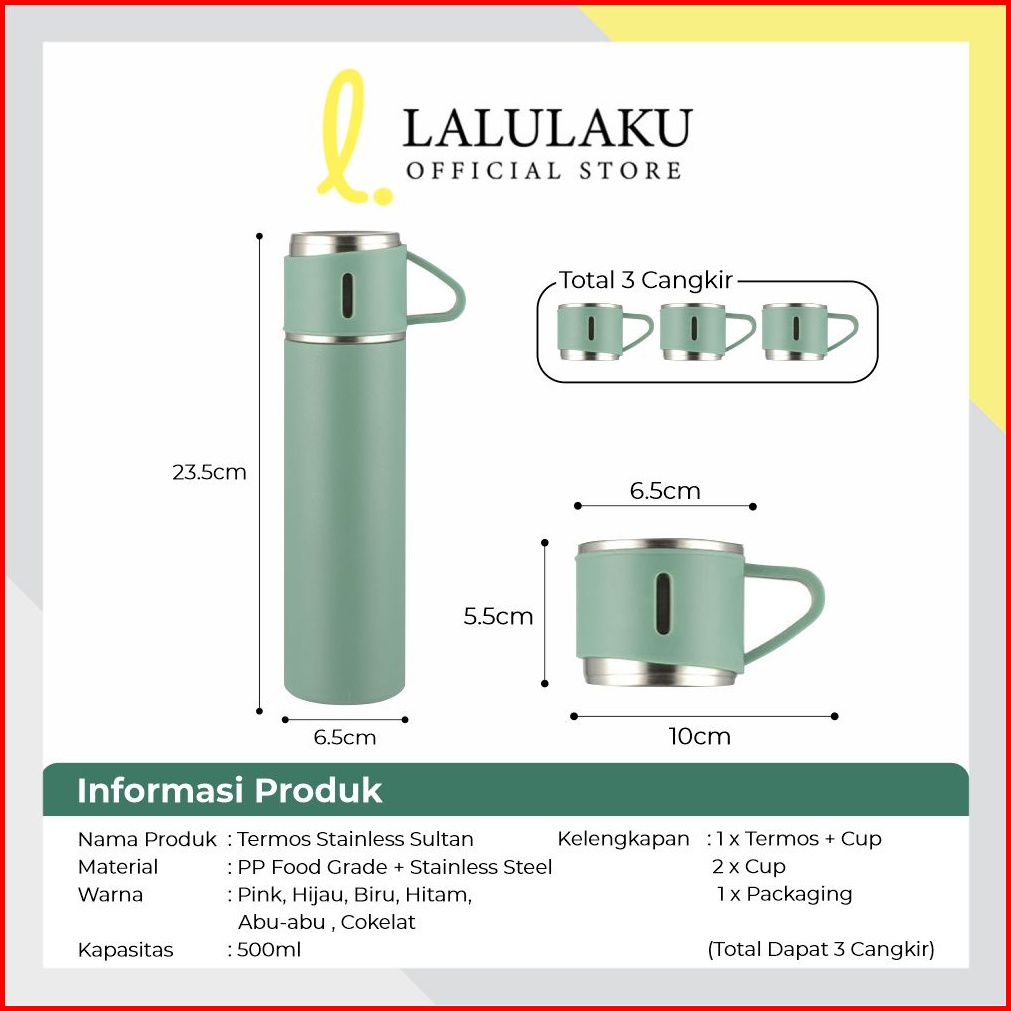 Llk Termos Sultan Vacuum Flask Set Botol Minum Cangkir Premium 500 Ml