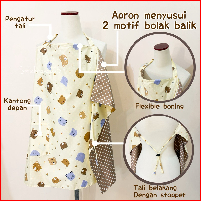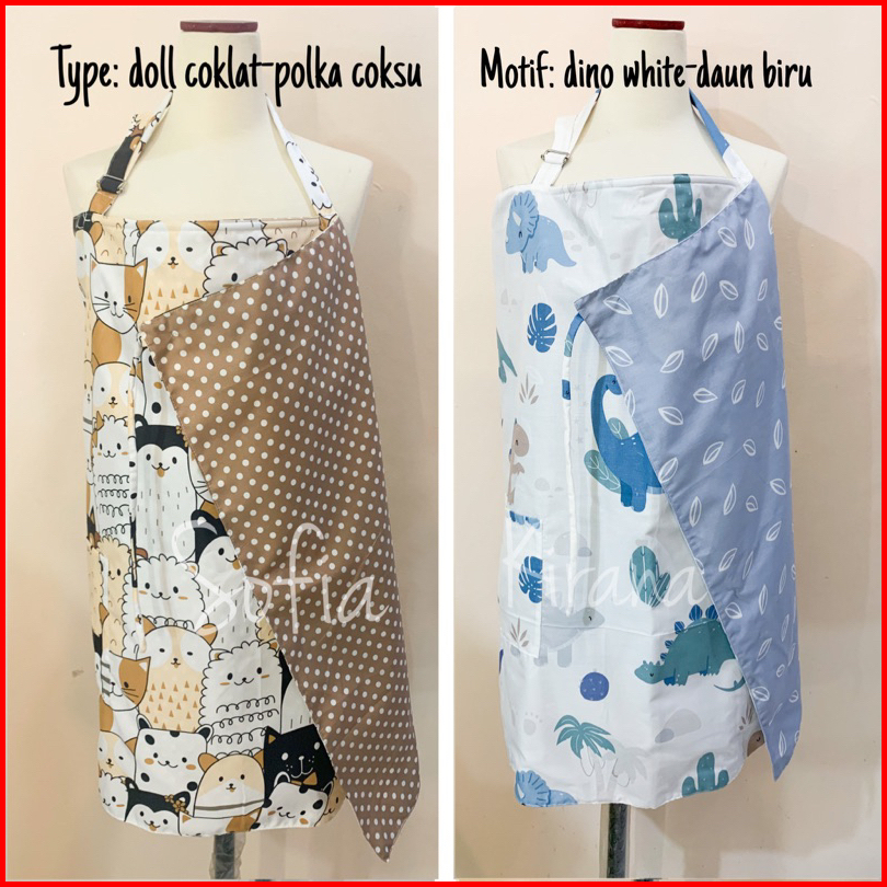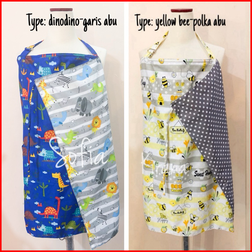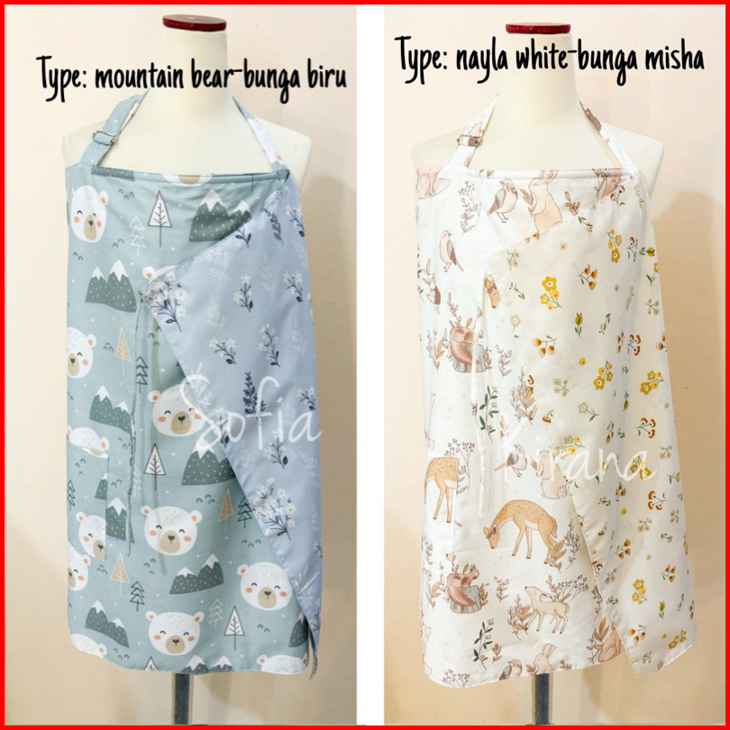 2in1 Apron Menyusui 2lapis Motif Bolak Balik Sofia Kirana Ukuran 68x90cm Nursing Apron Penutup Stroller