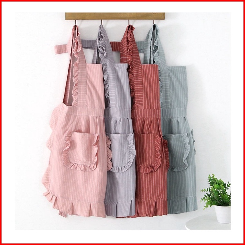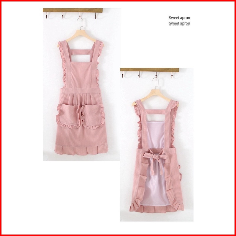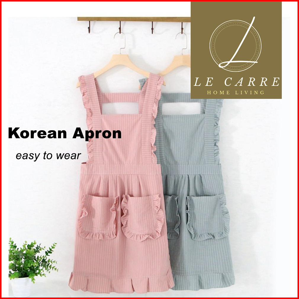 Lecarre Korean Butterfly Apron Celemek Dapur Masak Pelindung Baju Kain Renda