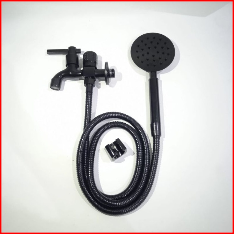 Paket Hand Shower Kotak Bulat Stainless Sus 304 Hitam Handshower Mandi Set Semprotan Sower Mandi Dan Kran Combo Black