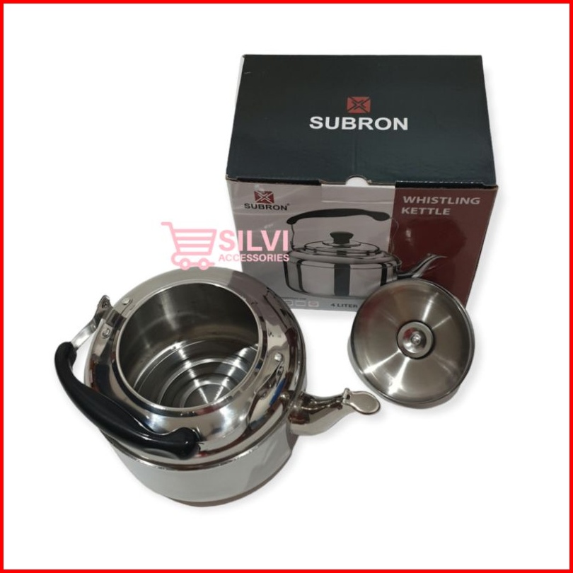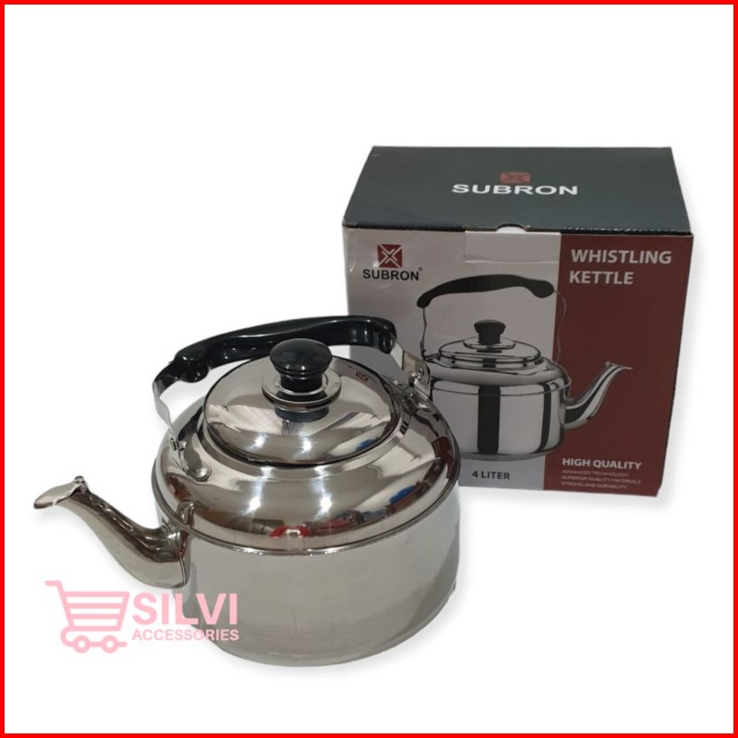 Teko Siul Stainless Merek Subron Gagang Pegangan Hitam 4l 5l 6l Whistling Kettle