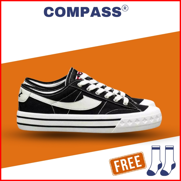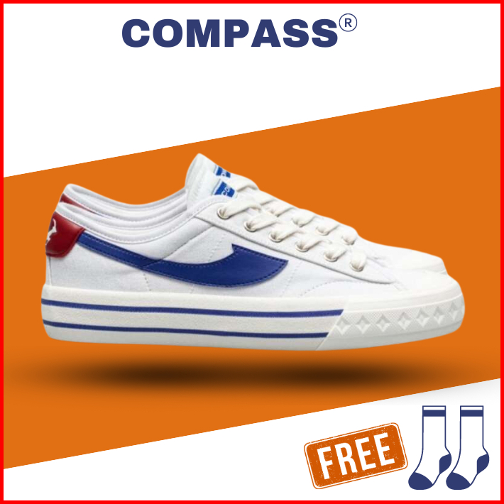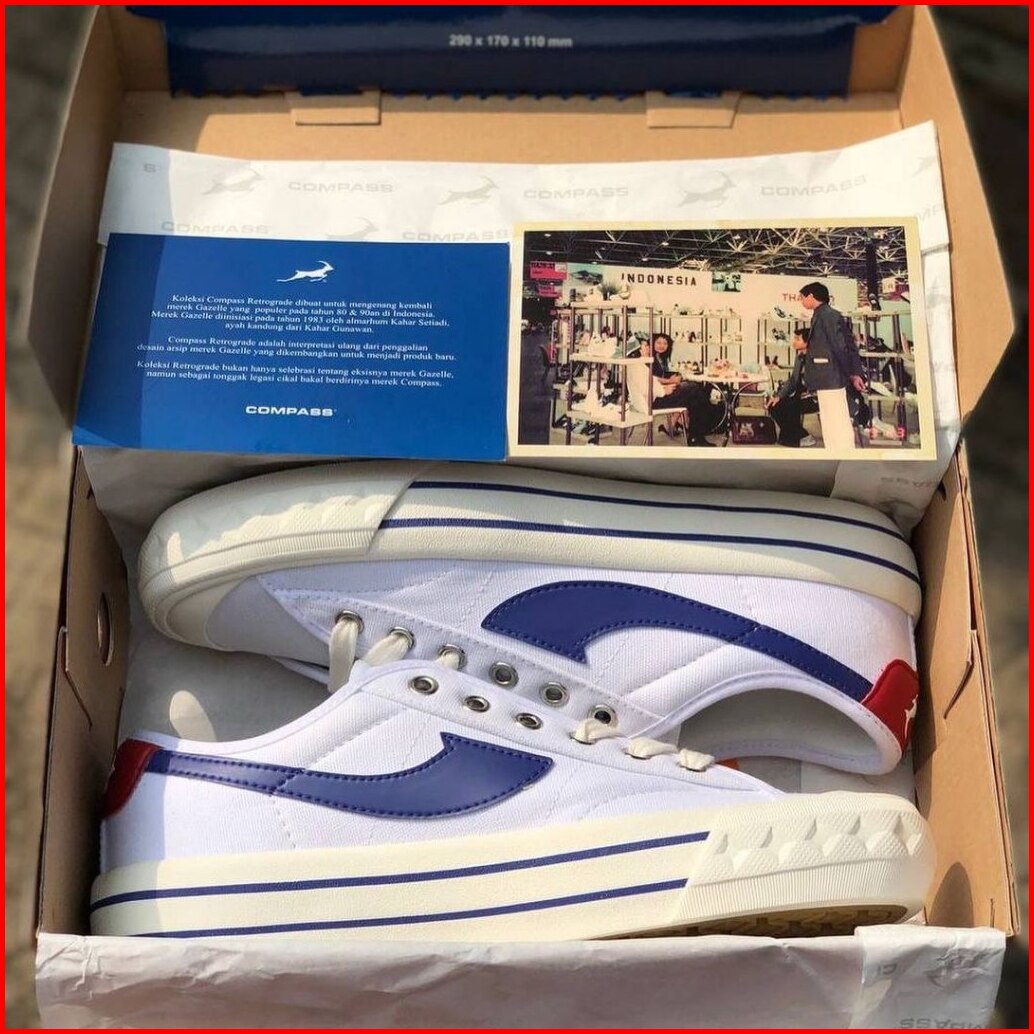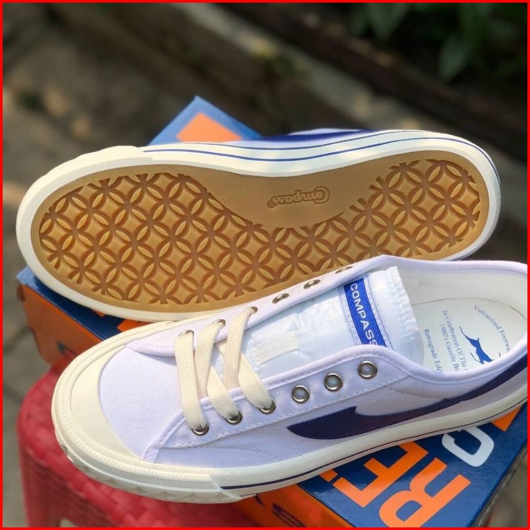 Sepatu Pria Compass Original Spatu Sneakers Pria Compas Retrograde Low White Blue Black White Cream Double Black