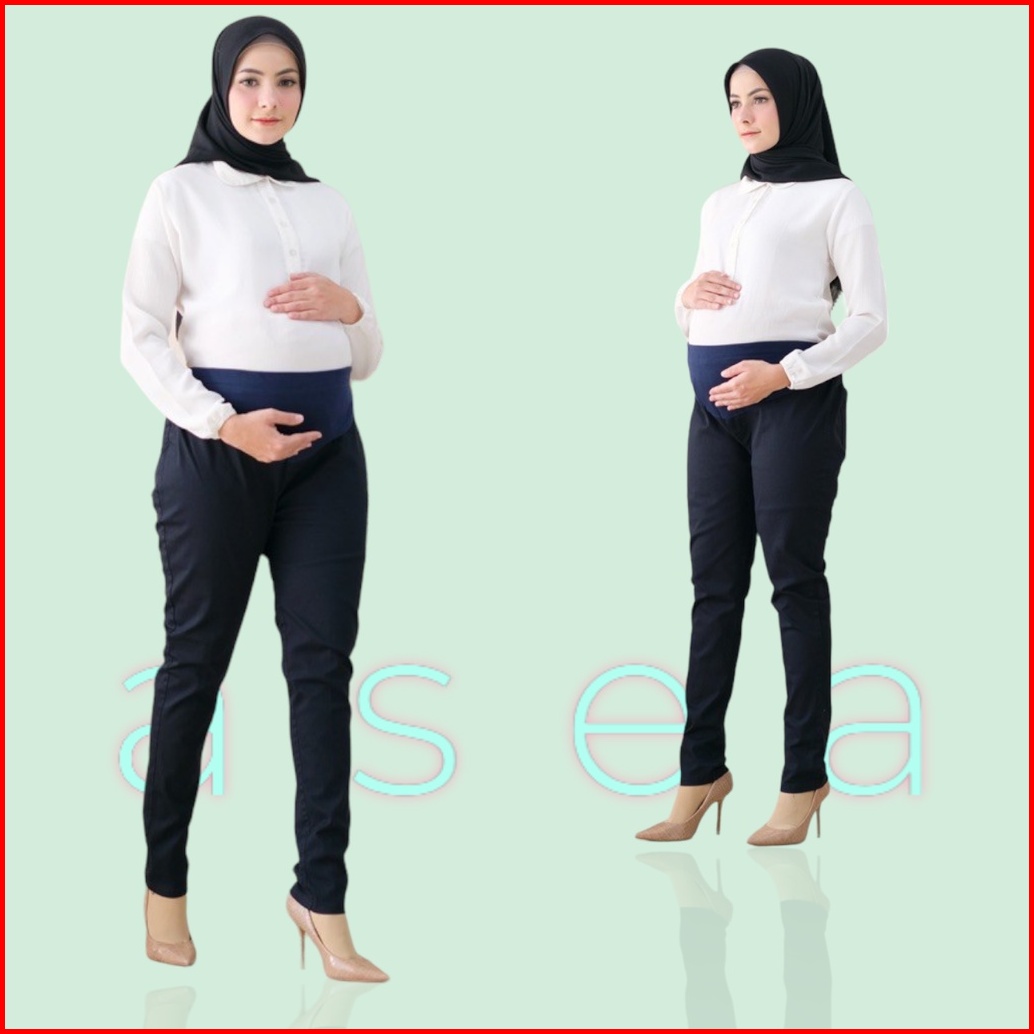 Asea Celana Hamil Kerja Kantor Jumbo Cotton Twill Stretch Premium Maternity Pants Wanita - Pakaian Bumil Th01 02