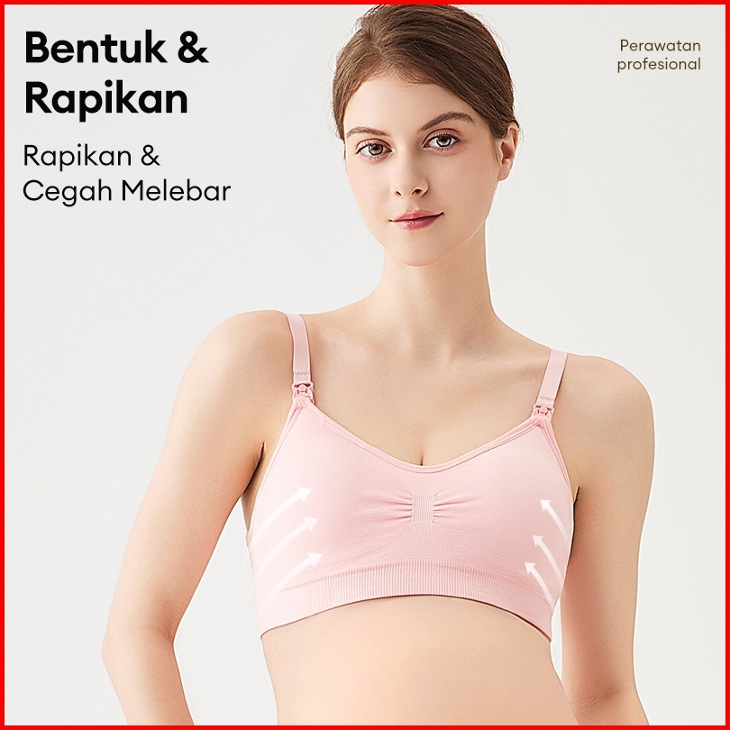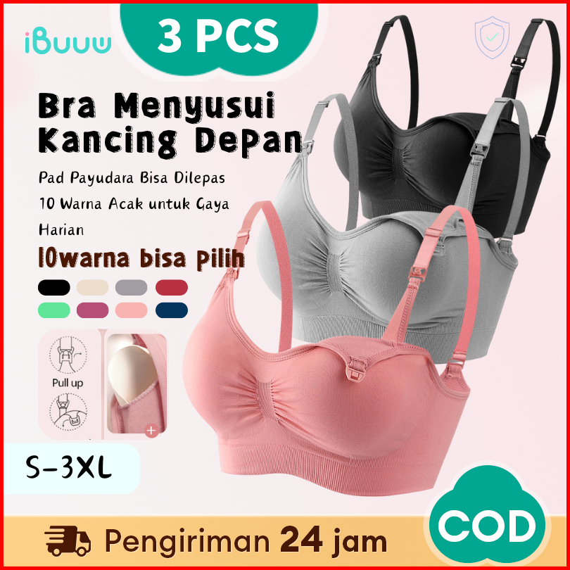 Angel Mommy 3pcs Bra Menyusui Kancing Depan Tanpa Kawat Bahan Katun Fashion Jumbo 937