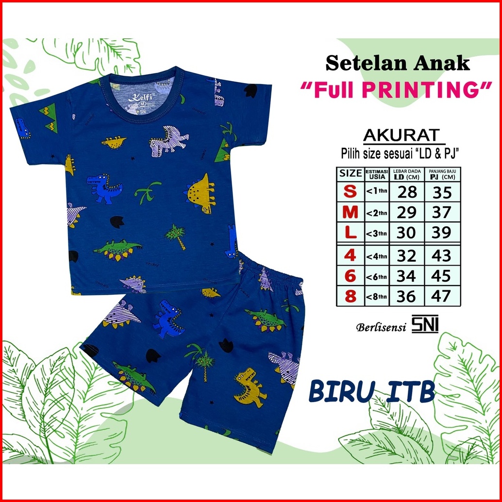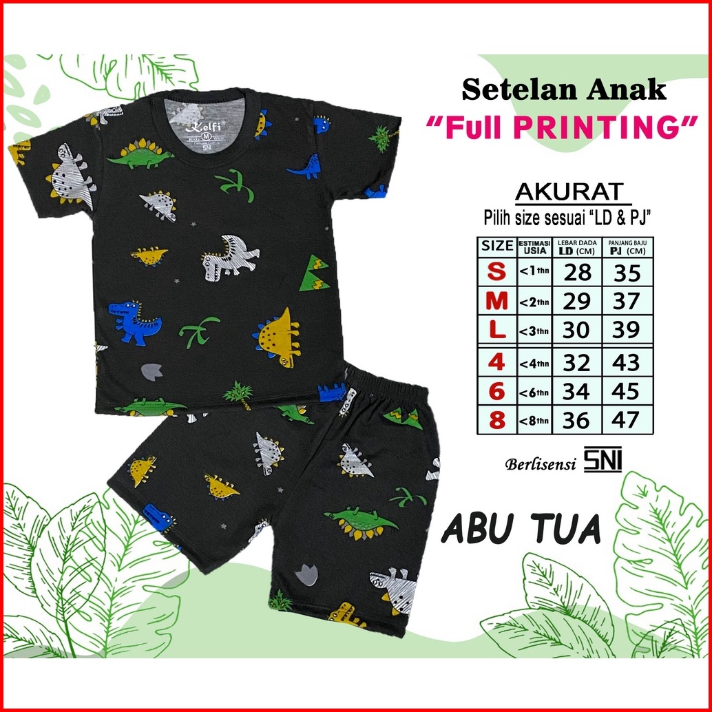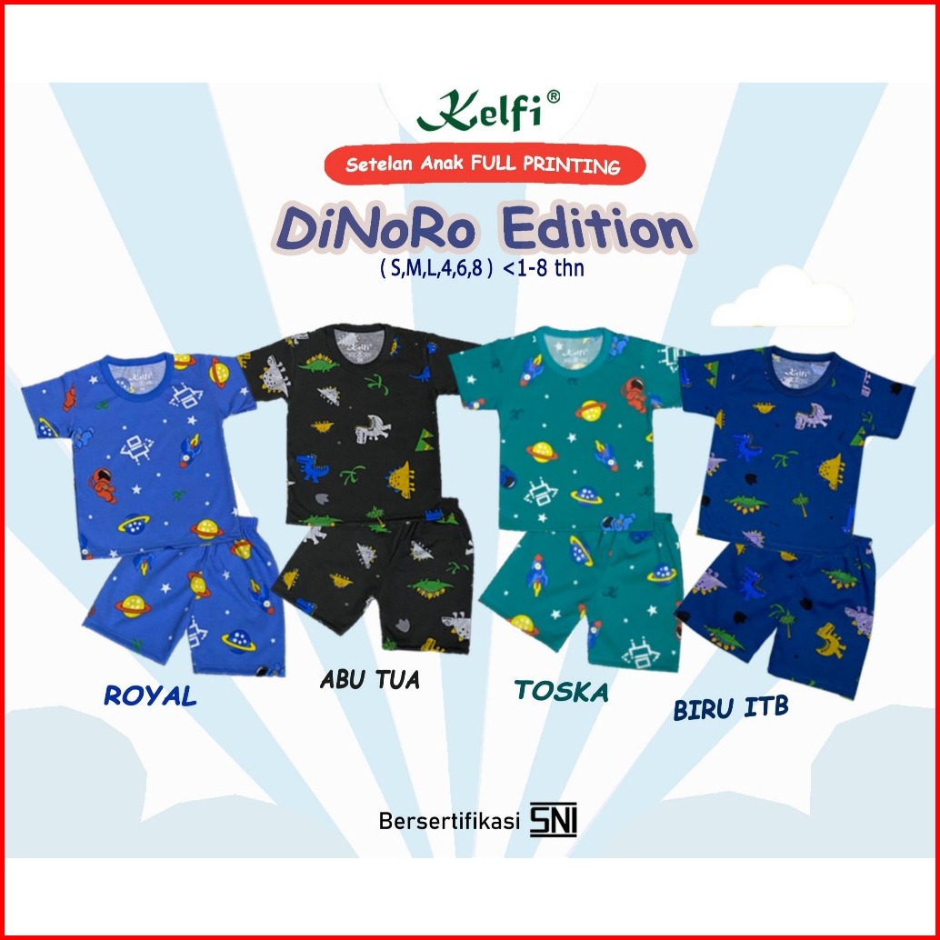 Promo 10.10 Kelfi Setelan Anak Full Printing Set Baju Anak Cowok Cewek 1- 8 Thn Dinoro Editio