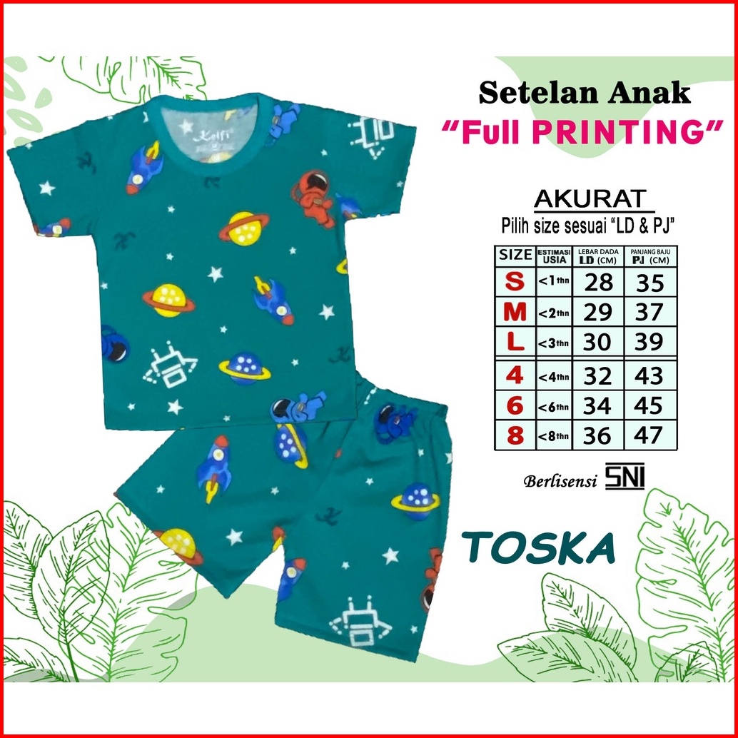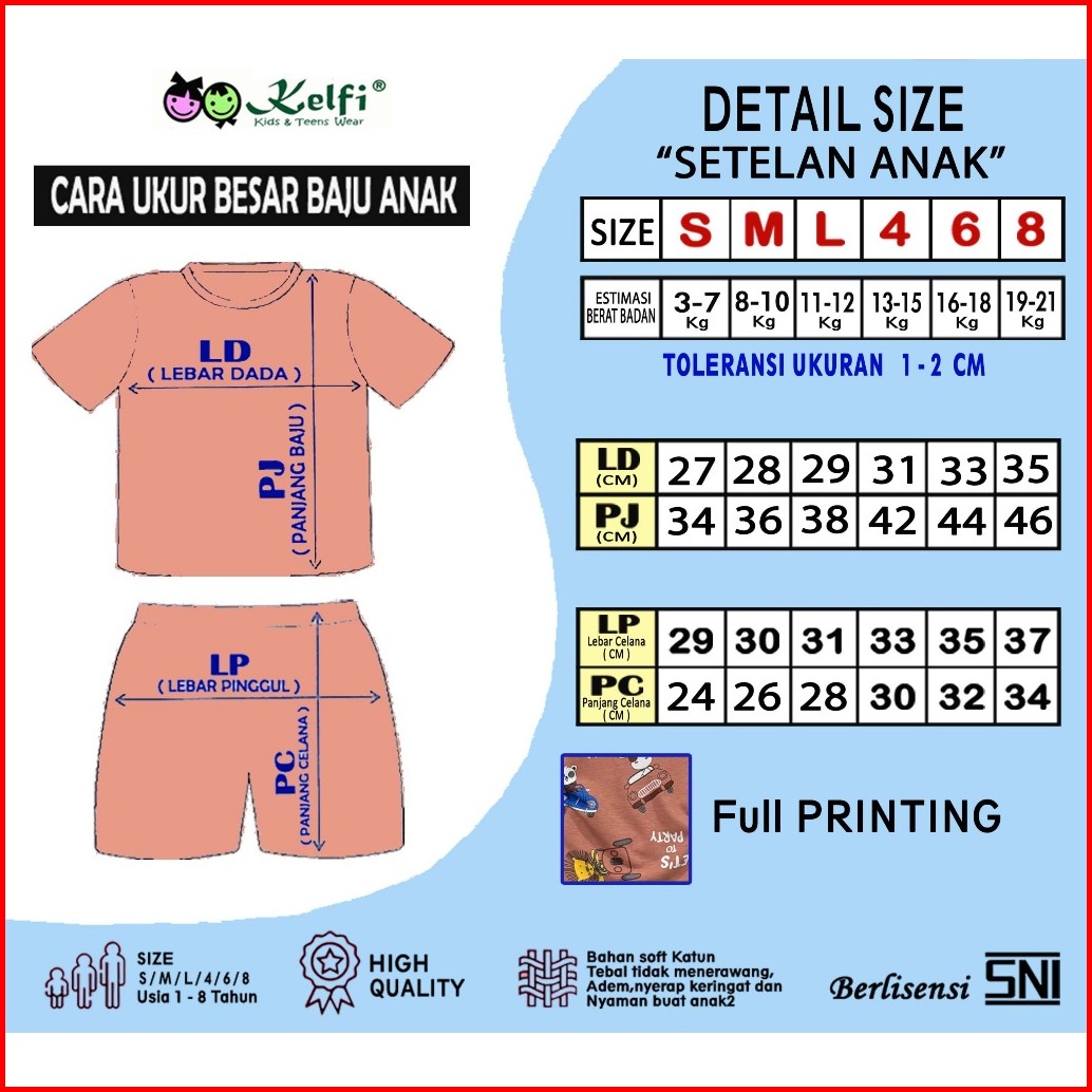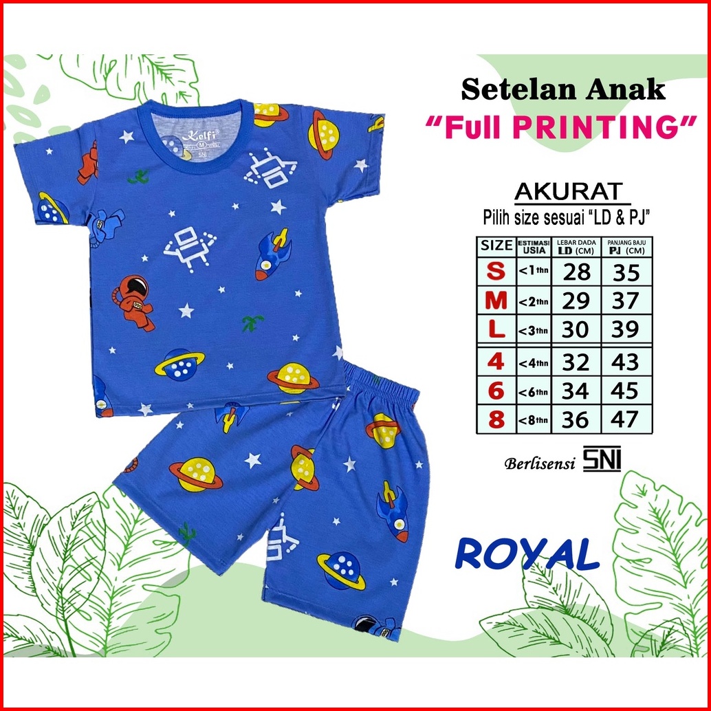 Promo 10.10 Kelfi Setelan Anak Full Printing Set Baju Anak Cowok Cewek 1- 8 Thn Dinoro Editio