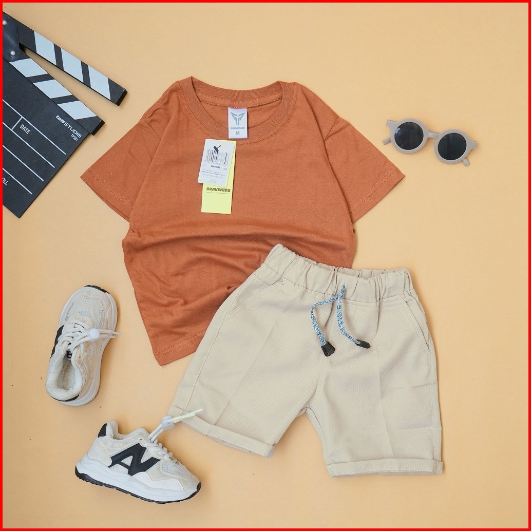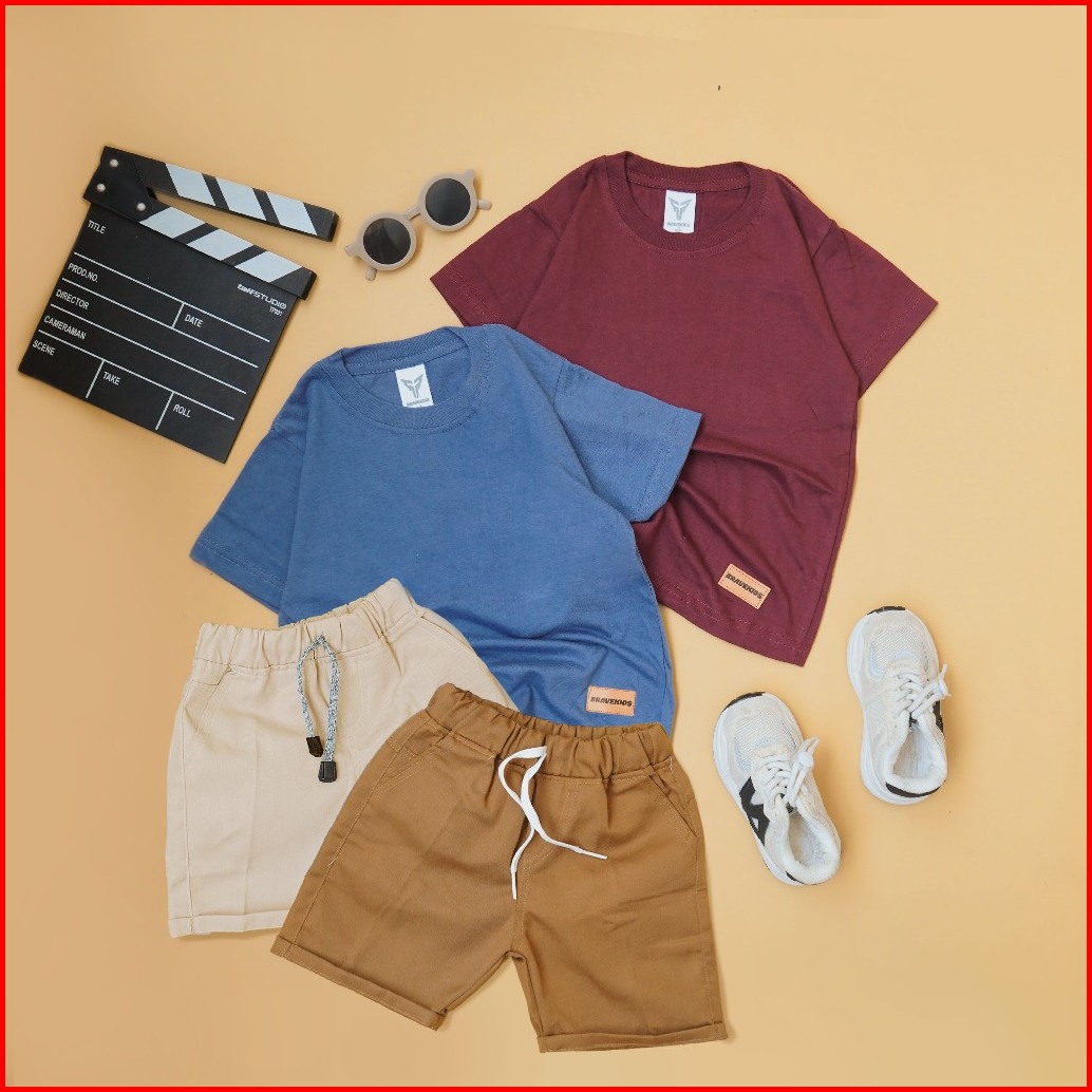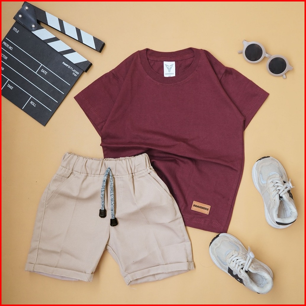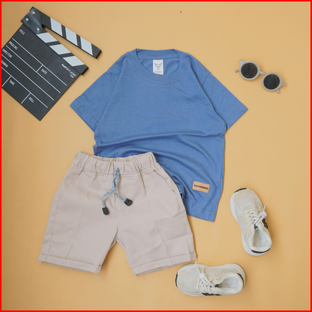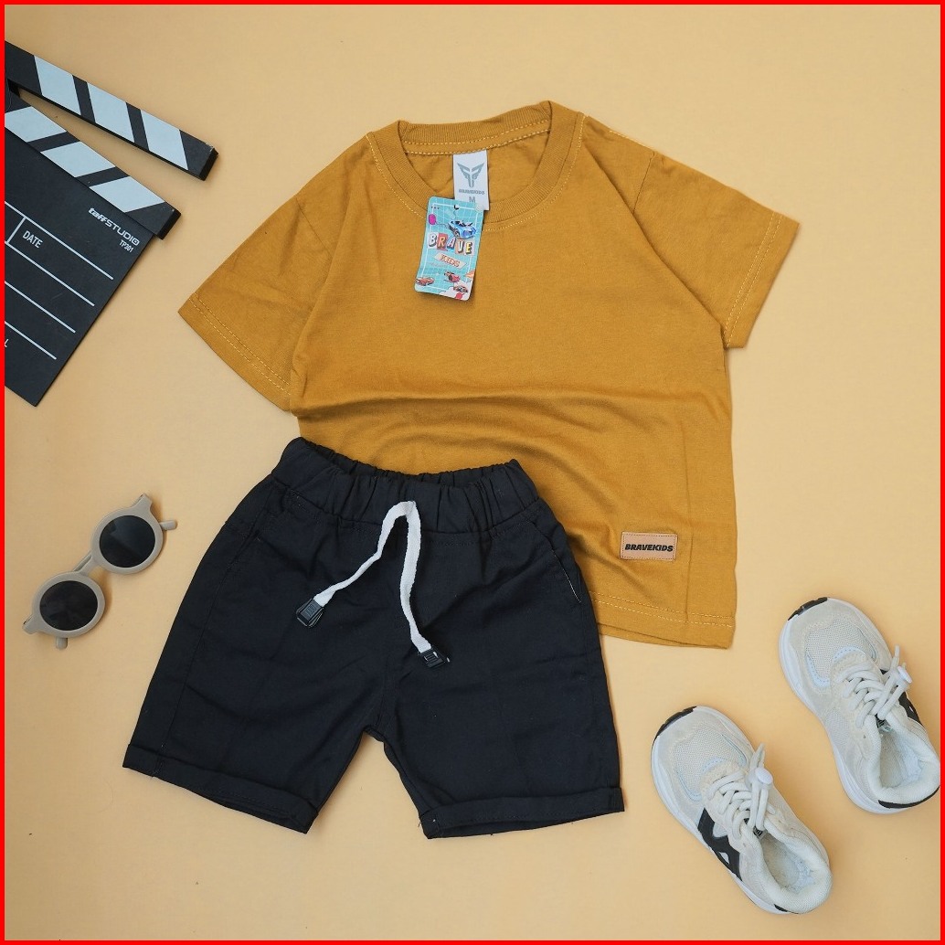 Bravekids - Setelan Anak Polos Cotton Combed 24s Celana Broadsort