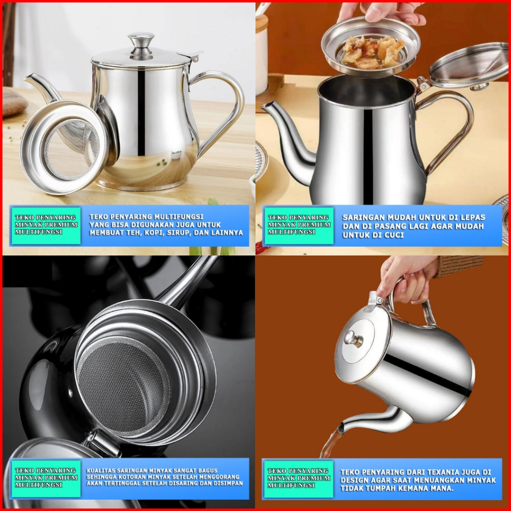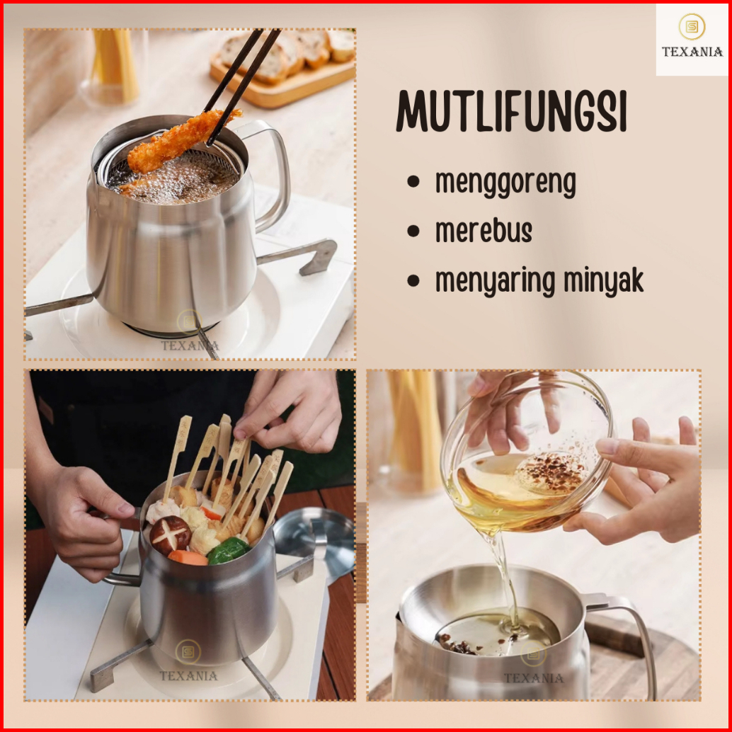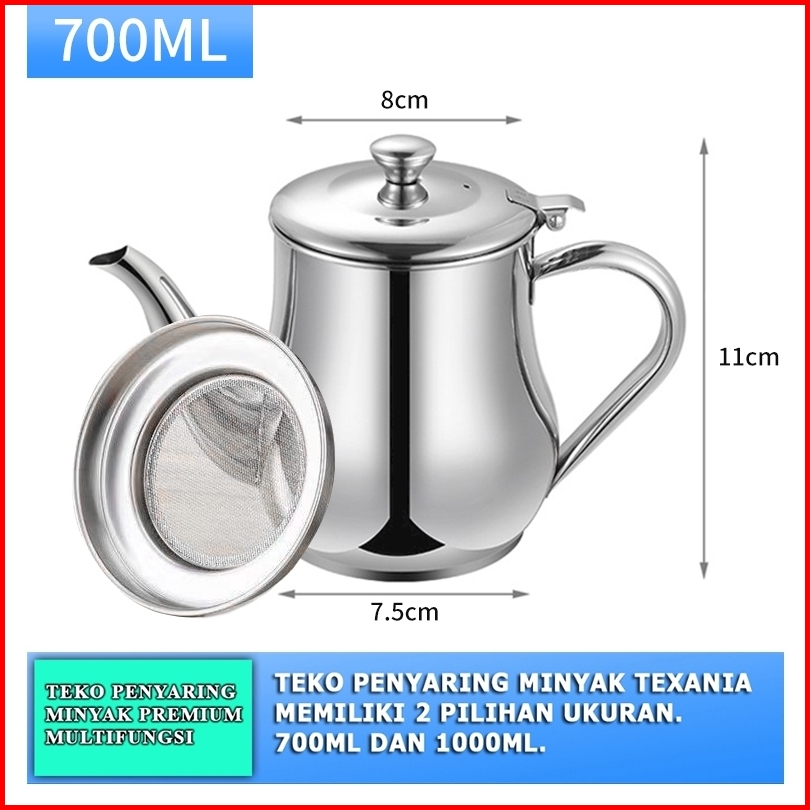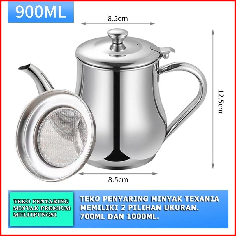 Terlaris Texania Teko Saringan Minyak Oil Pot Gelas Teko Stainless 700ml Dan 900ml Teko Air Minum Teko Deep Fry Pot 1500