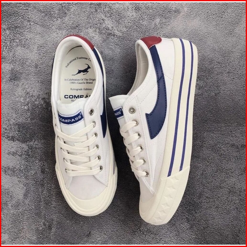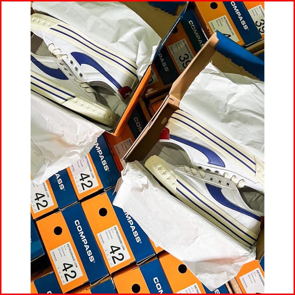 Compass Retrograde Low White Blue Sepatu Pria Wanita Sekolah Kerja Olahraga Healing Kekinian Compass Retrograde Compas S