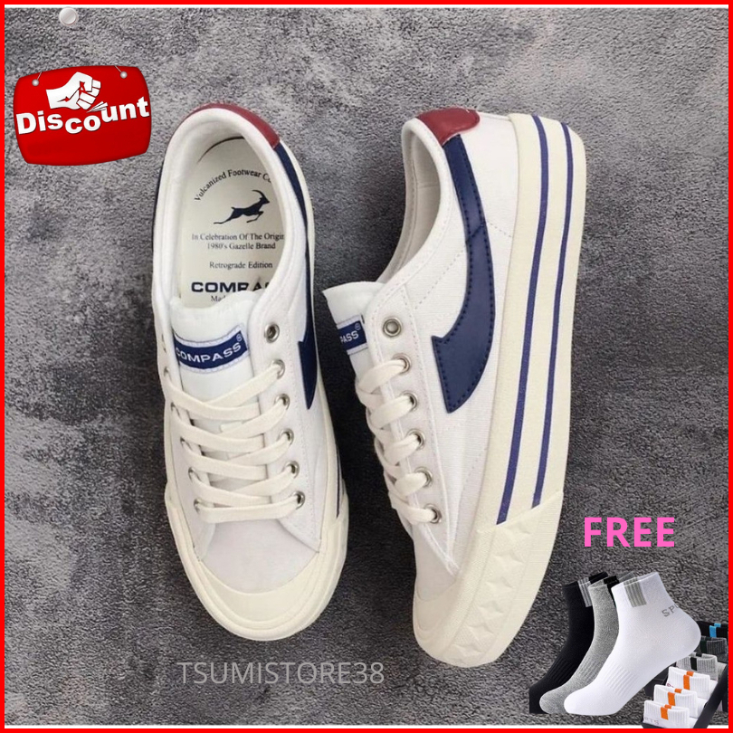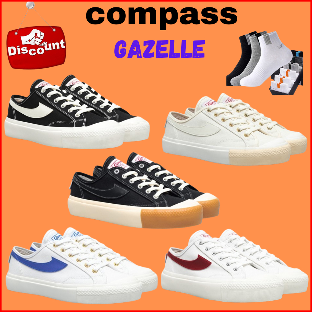 Bonus Kaos Kaki Oldschoolcompass Gazelle Low Black White Cream White Blue White Red Blackgum Sepatu Compass Retrograde L