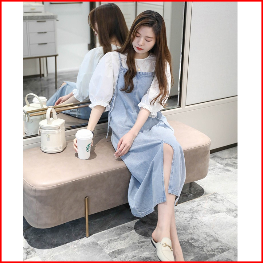 Keygirl Overall Jeans Wanita Korean Fashion Dewasa Rok Panjang Jumbo Dress Midi Fashion Wanita Overall Jeans Denim Terba