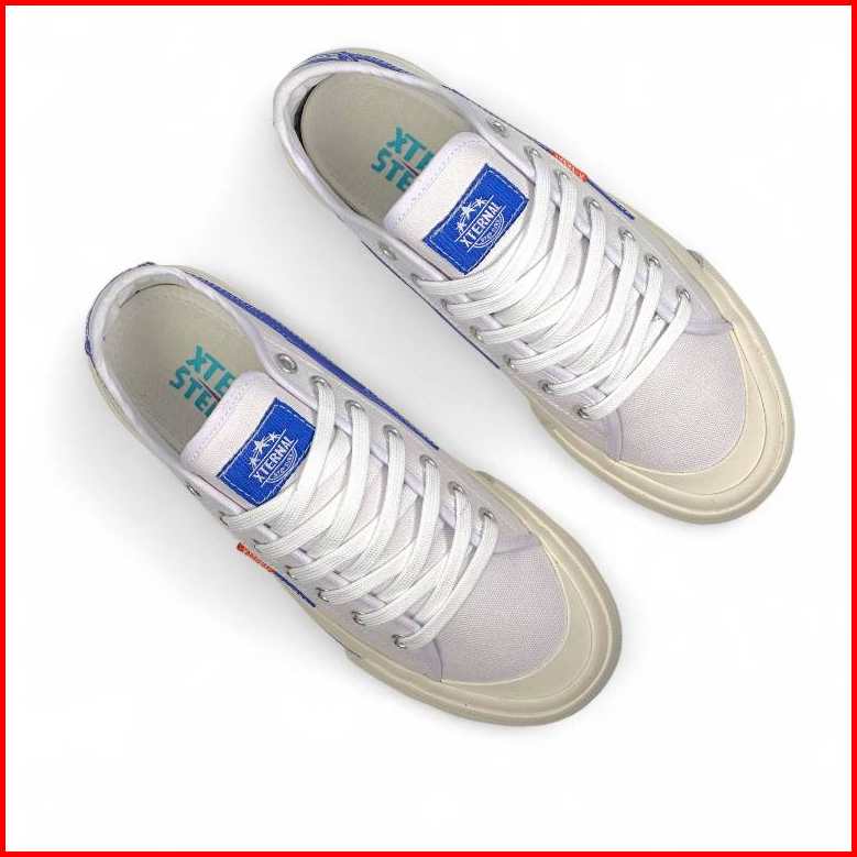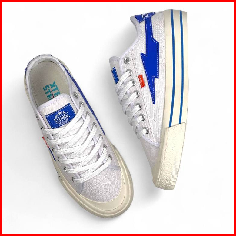 Xternalstepsure - Sepatu Unisex Sneakers Mitterns Storm Low White Blue Casual Pria Wanita