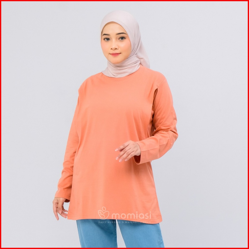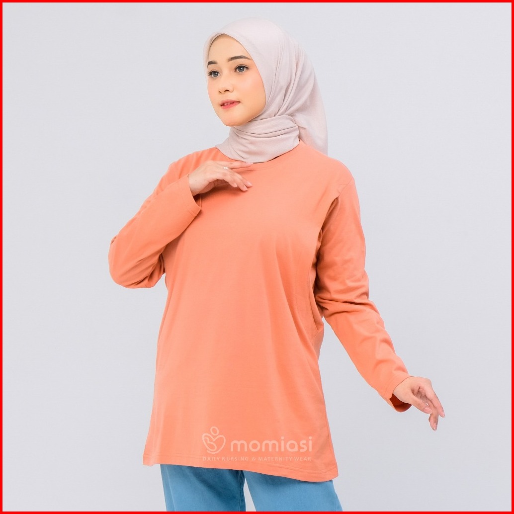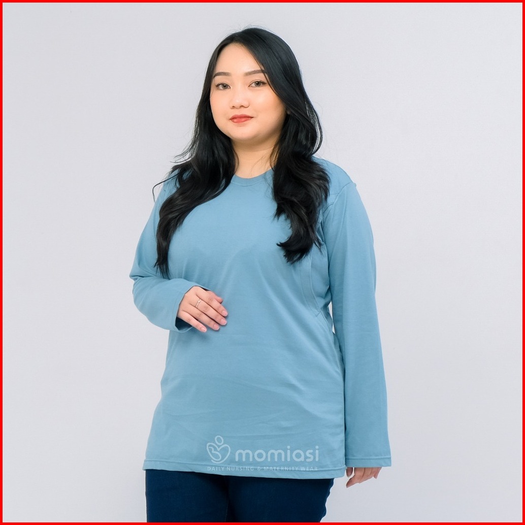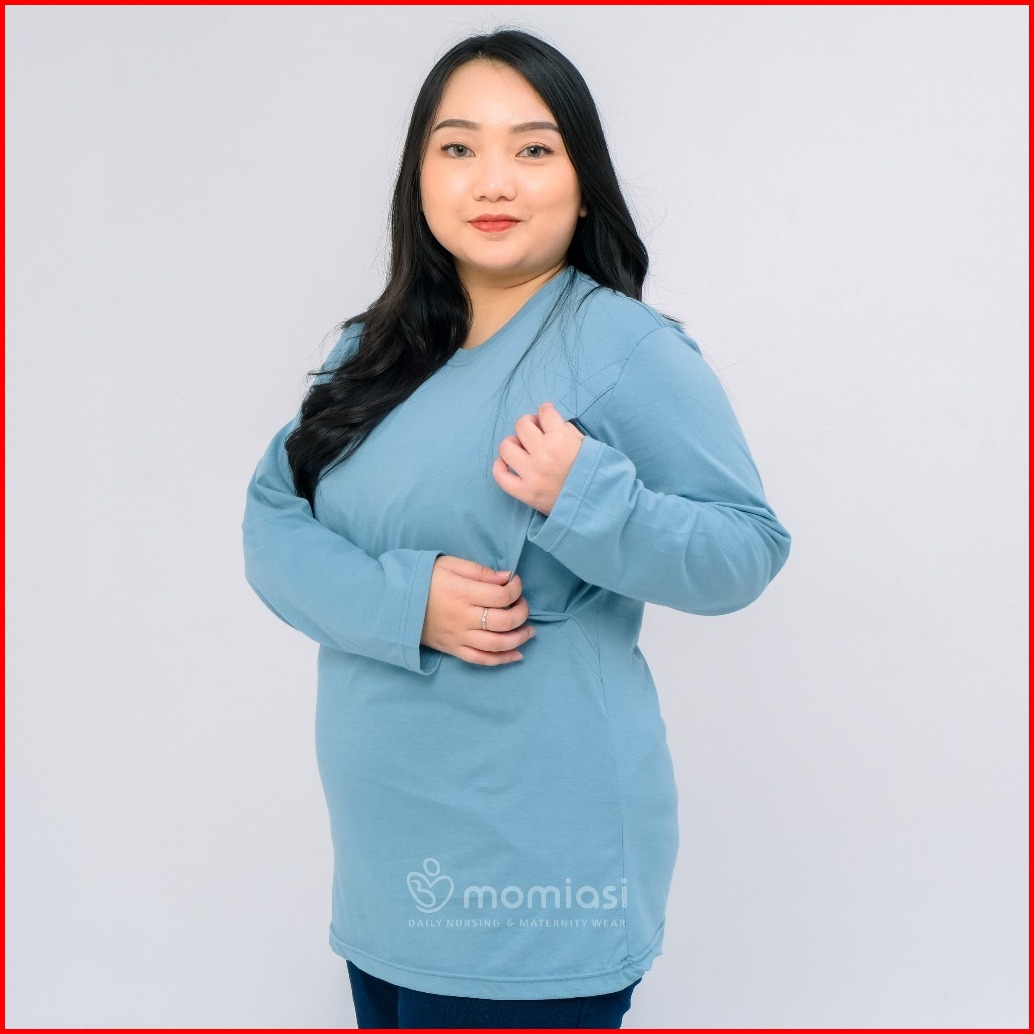 Momiasi - Baju Kaos Ibu Menyusui Wanita Busui Nursing Wear Lengan Panjang Jumbo Bukaan Belahan Samping Premium