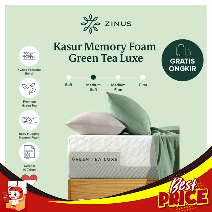 SUPER ZINUS KASUR BUSA GREEN TEA LUXE MEMORY FOAM / 7-ZONE PRESSURE RELIEF / MATTRESS IN A BOX