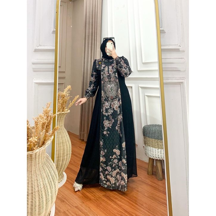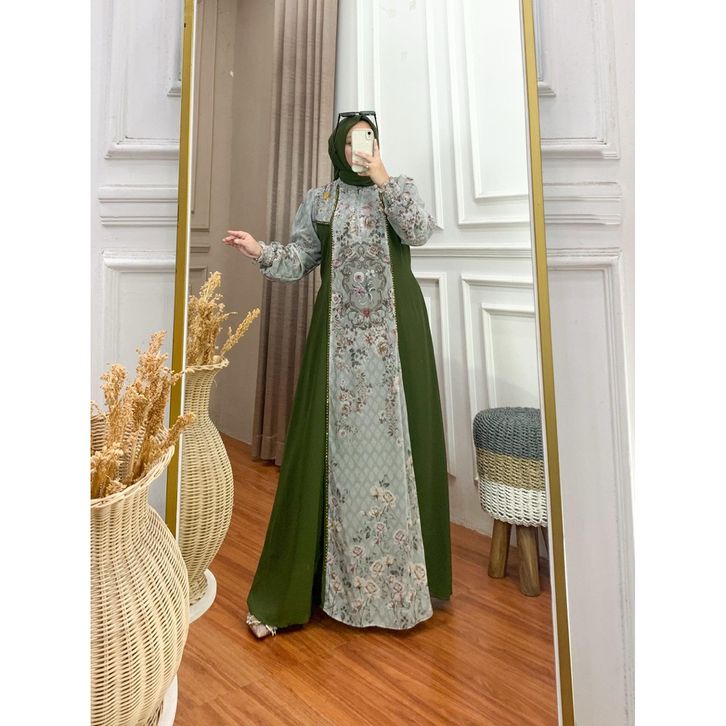 Gamis wanita set hijab Seruty printing kekinian Simple Elegant Lebaran 2026