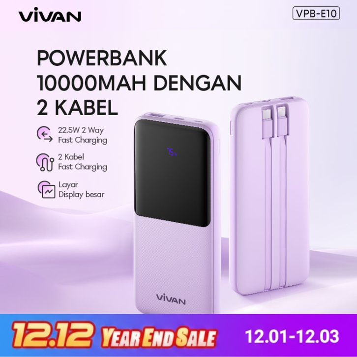 POWERBANK FAST CHARGING ORIGINAL VIVAN VPB-E10 POWERBANK 10000 MAH 4 OUTPUT 22.5W PD QC 3.0 VOOC VIVAN OFFICIAL STORE