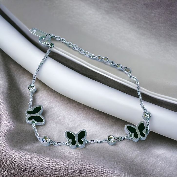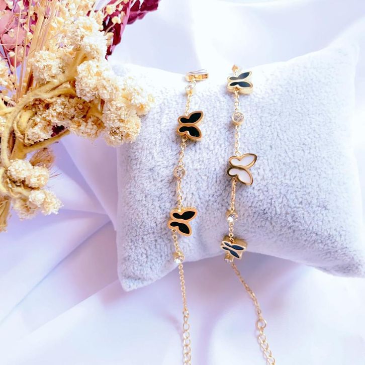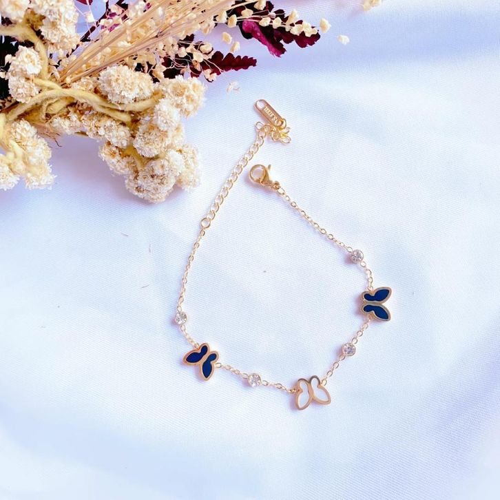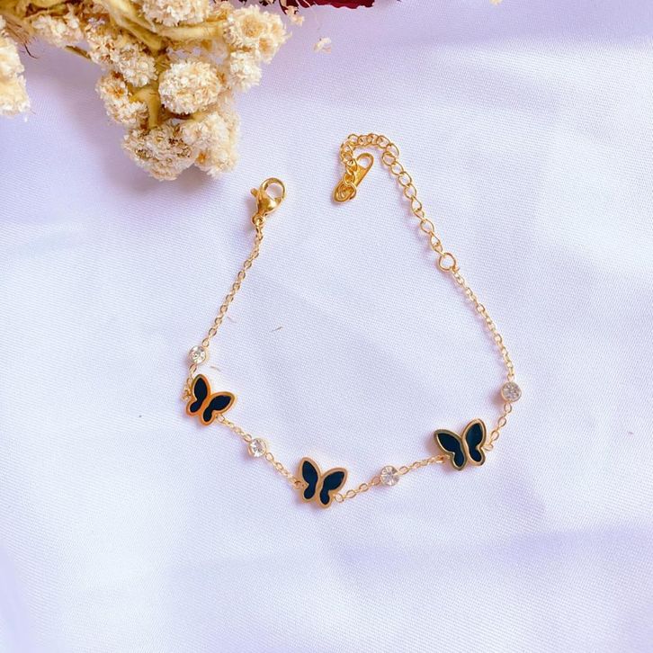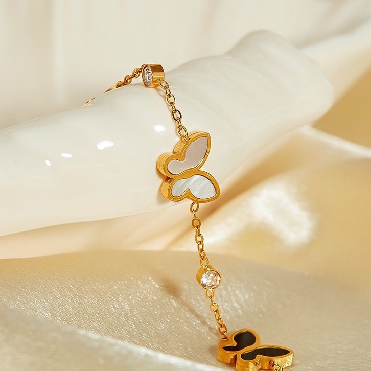 Gelang tangan Fashion wanita Titanium Motif kupu kupu warna gold/silver