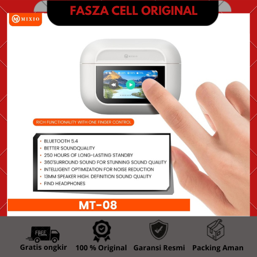[FLASH SALE] Headset Bluetooth MIXIO MT-08 LCD ANC TWS Earphone Touch Screen V5.4 Smart Screen Active Noise Reduction