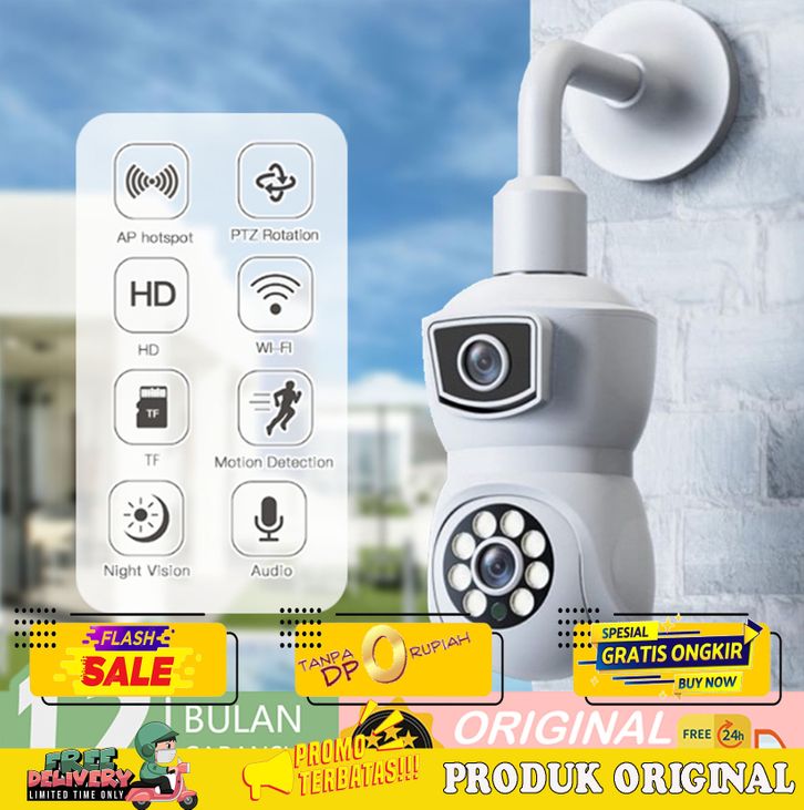 【Ready】V380 Outdoor CCTV Bohlam Lensa Ganda Screen Monitor Ganda Two way audio PTZ