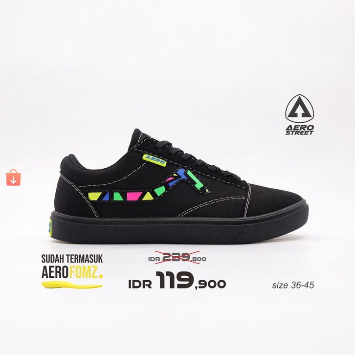 Aerostreet 36-45 Massive X Volt Hitam - Sepatu Sneakers Casual Pria Wanita Aero Street 21HH07