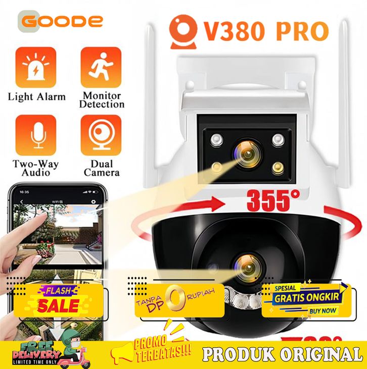 GOODE V380 PRO Outdoor CCTV Dual Lens HD 4MP Connect to Cellphone With WiFi Kamera Waterproof PTZ IP Ca