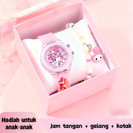 Set Kado Jam Tangan Anak Set Gelang Jam Tangan Karakter Bercahaya LED Jam Anak Tk Hadiah Ulang Tahun Anak Perempuan