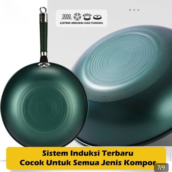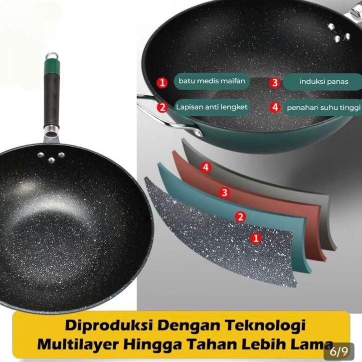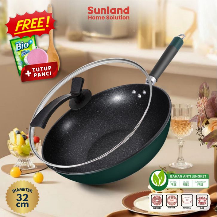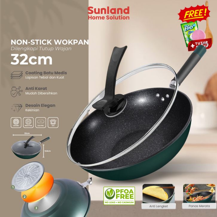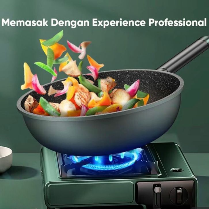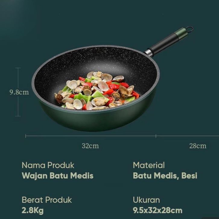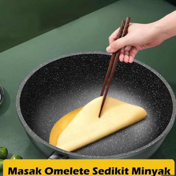 Wajan Granit Hitam Teflon Penggorengan Batu Medis 32 CM Tutup Kaca Anti Lengket Cocok Segala Jenis Kompor Stylish Trend