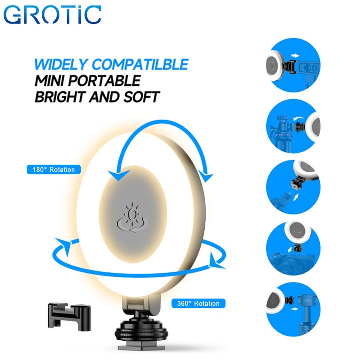 Ringlight Kontenメ GROTIC Ring Light Lampu Selfie Live Konten LED 8,5 cm Tripod Mounting D07