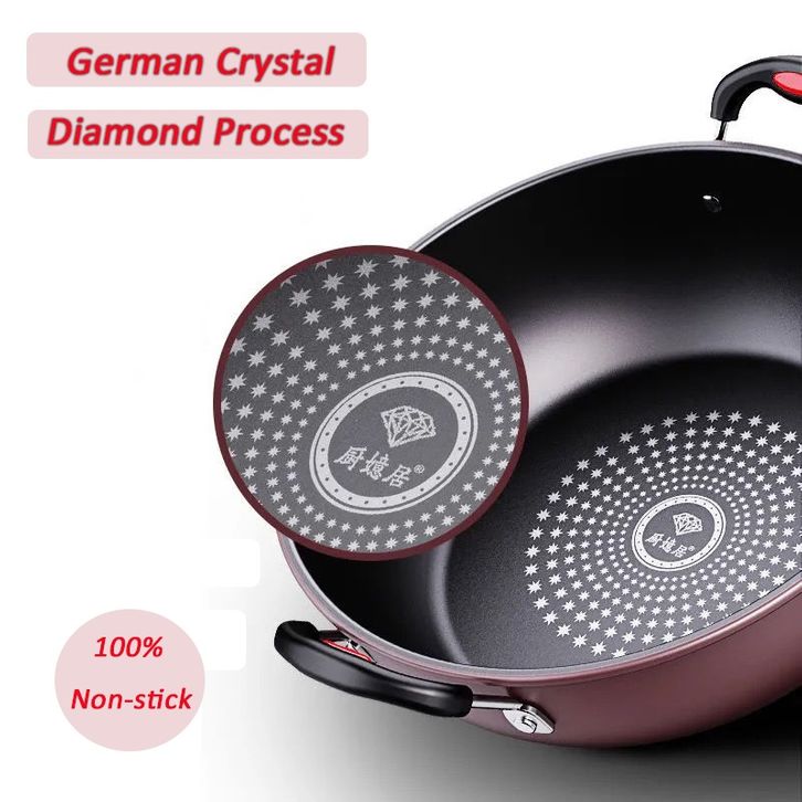 Sup Pot Wajan Penggorengan Anti Lengket Waja Diamond Wok Pan Batu Medis 30CM Tebal Anti Gores Panas Merata Trend