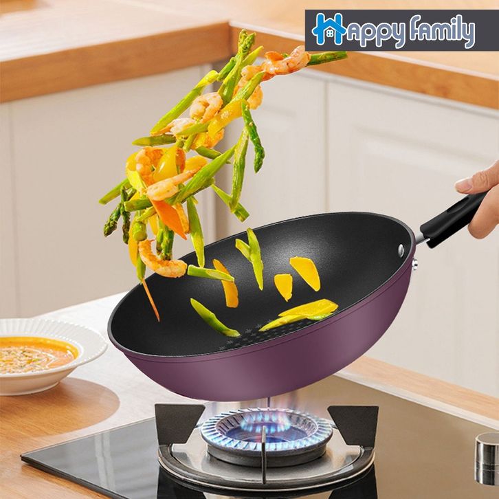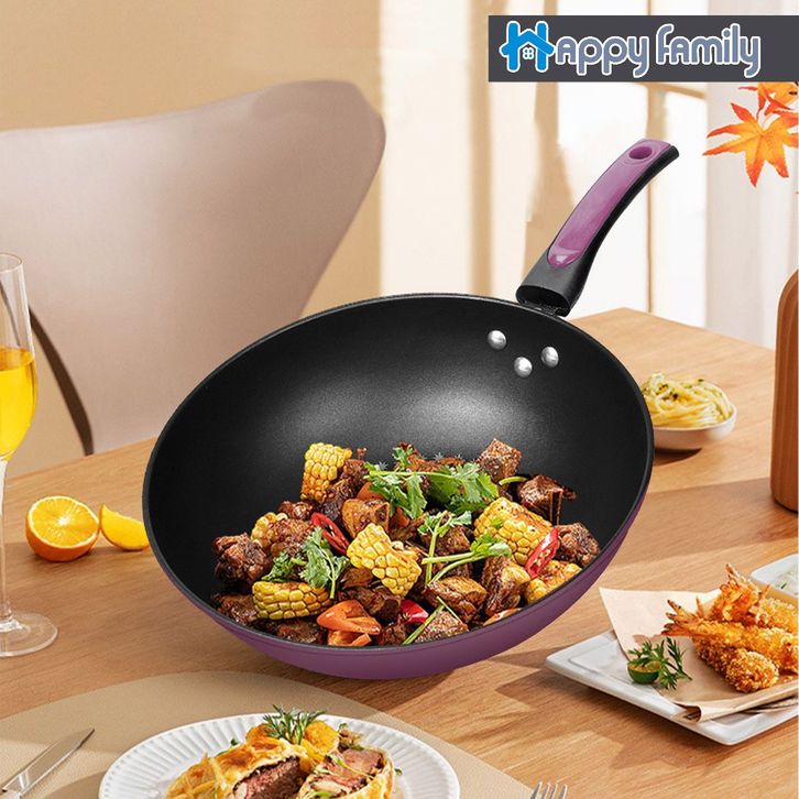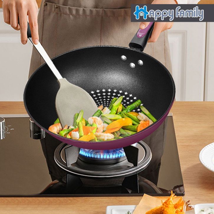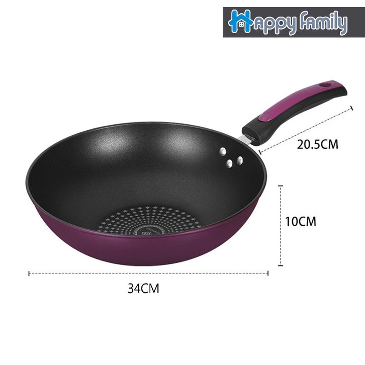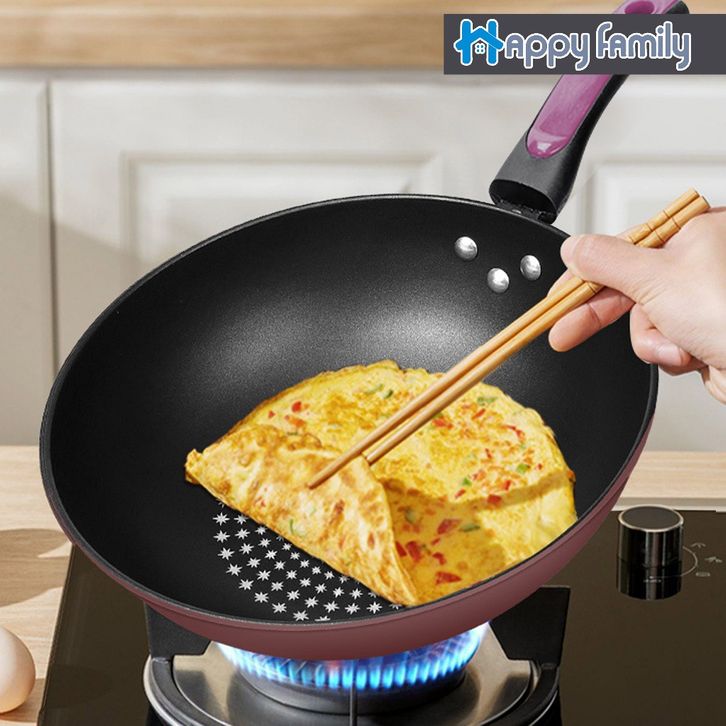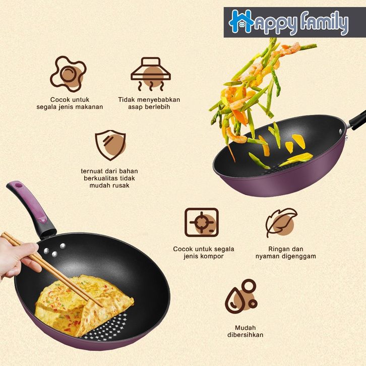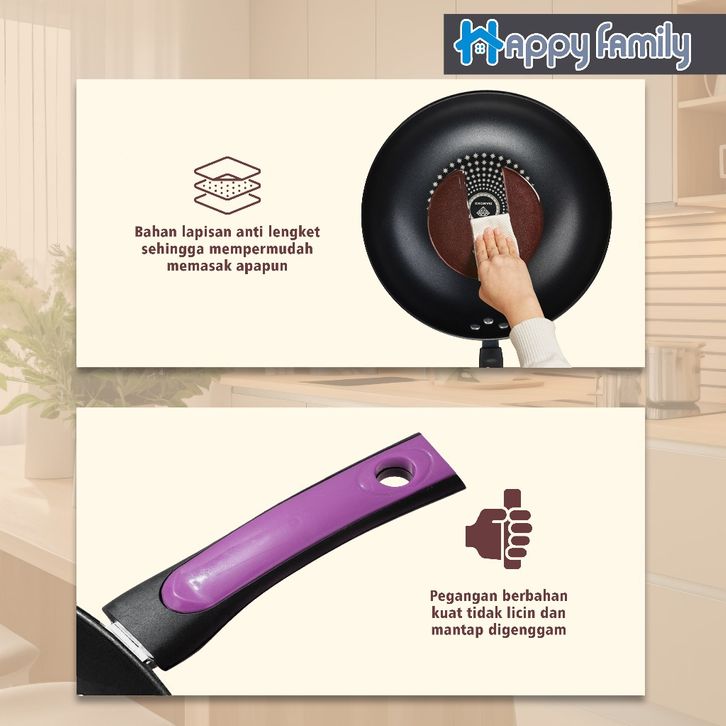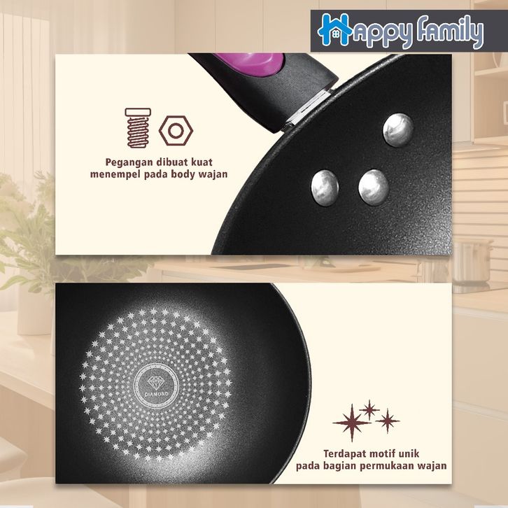 Wajan Pengorengan Diamond Wok Pan Batu Medis Anti Lengket Tebal Premium Ukuran 34 Cm Gagang Wajan Anti Panas Stylish