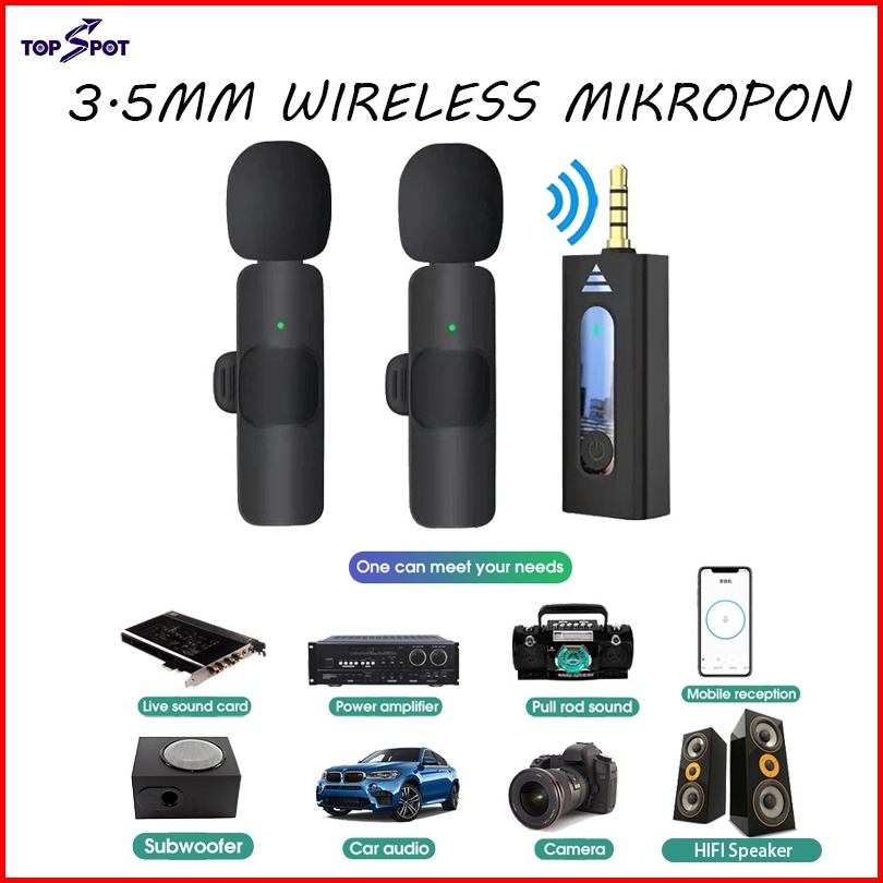 Topspot Nirkabel 3.5mm Lavalier Lapel Mikrofon Siaran Hp Wireless Microphone Pengurangan Kebisingan Mikrofon Pengurangan