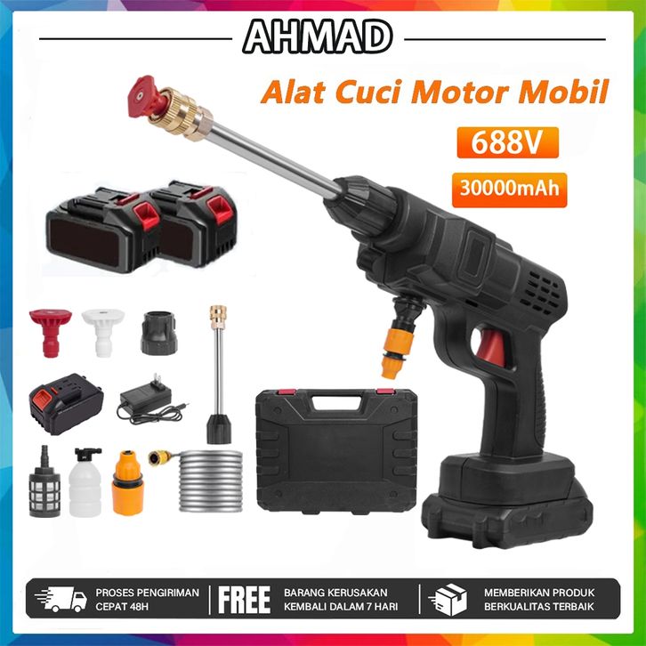 AHMAD 688V 2 baterai Alat Cuci Mobil Cuci Staem Ac Mobil Screen Sablon Berkualitas Pompa Mesin Steam Power Spayer Alat