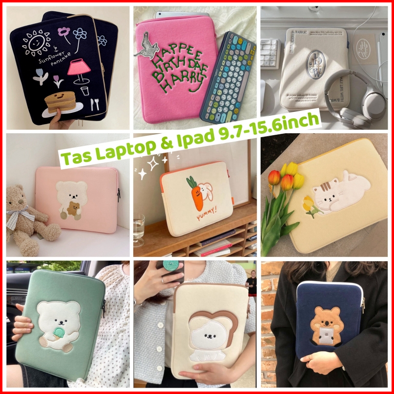 Tas Laptop And Pad Sleeve Tas Komputer Anti Goncangan Bordir Korea 10 11 13 14 15.6inch