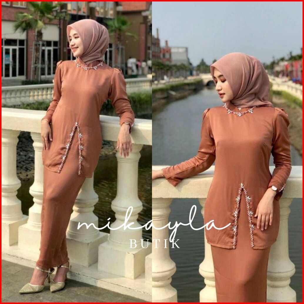 Ada Jumbo - Warna Teracotta Ready Oneset Elliza Kurung Melayu Dress Pesta Setelan Wanita Baju Kondangan Kekinian Full Pa