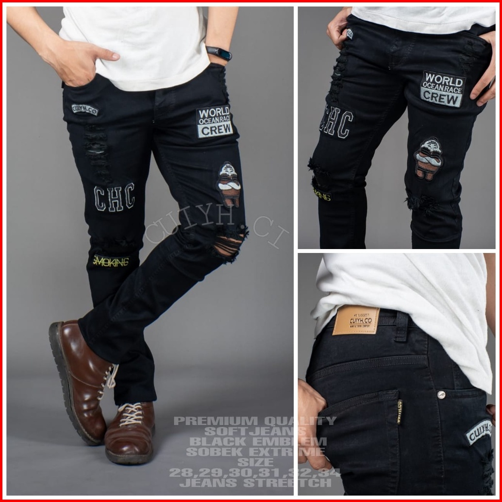 Celana Panjang Soft Jeans Sobek Pria Original Celana Jeans Pria Sobek Lutut Celana Jeans Sobek Lutut Pria Robek Ripped S