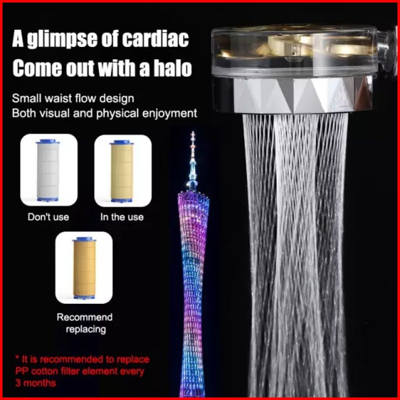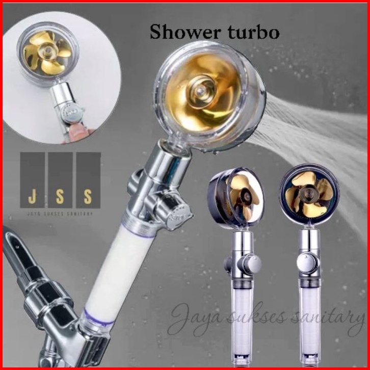 Turbo Fan Shower Head Water Saving High Pressure Rainfall Propeller Abs Jet Shower Head 360 Rotation