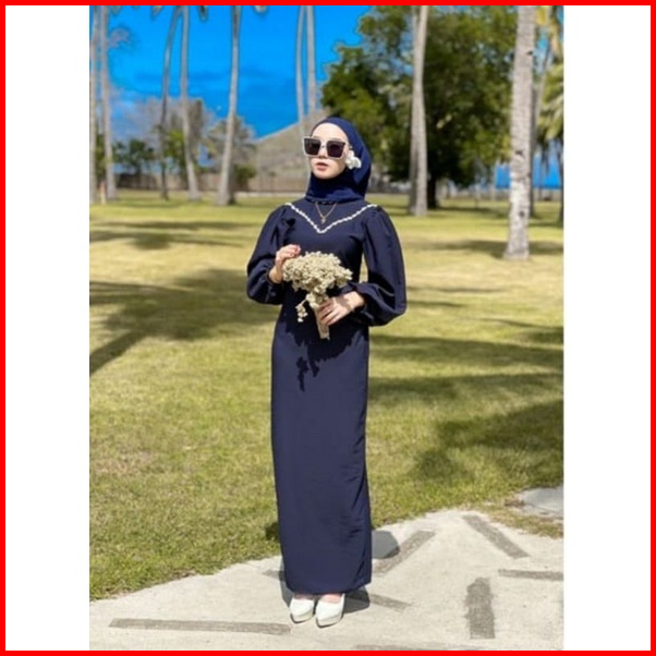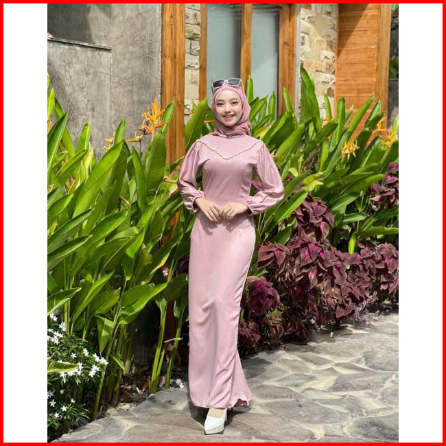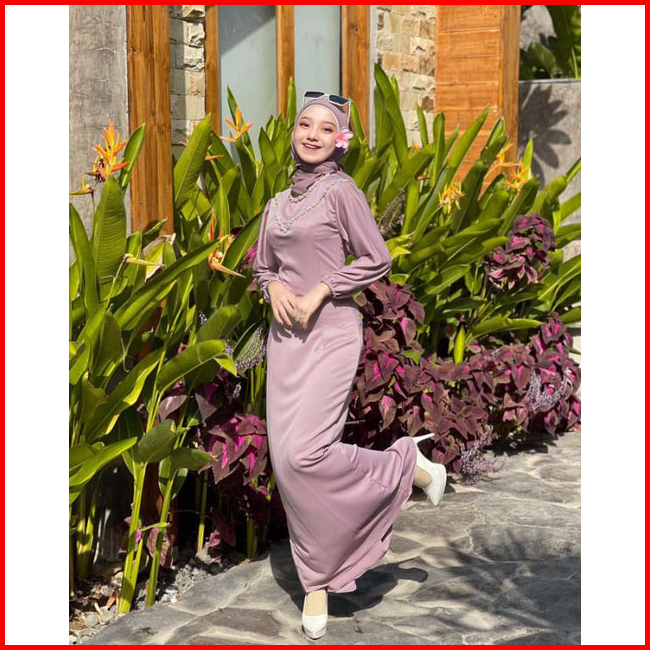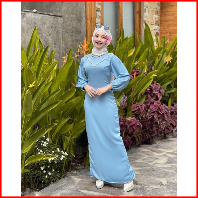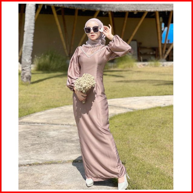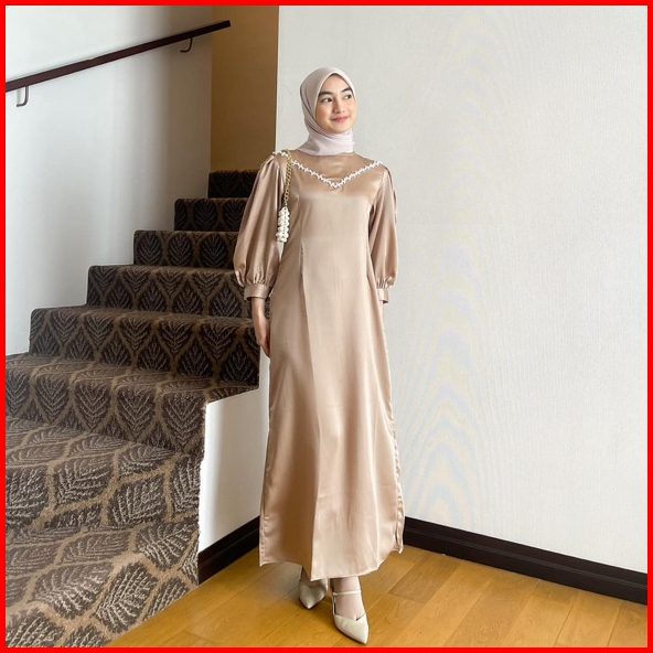 Ready Stock Calendula Dress Satin Silk Premium Gamis Kondangam Kekinian Maxi Dress Satin Polos Kombinasi Payet Mutiara G