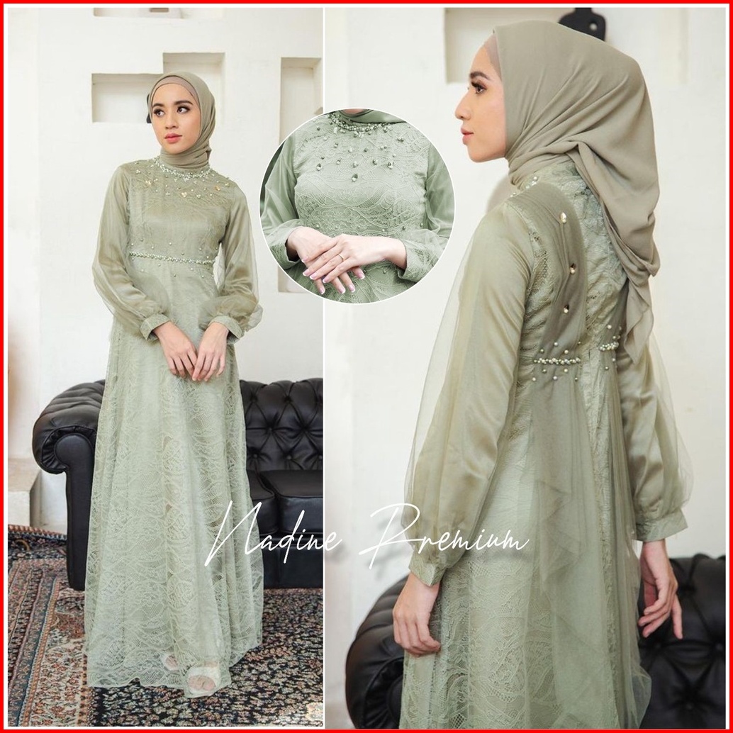 Jumbo Ready - New Salwa Nadine Dress Exclusive Terbaru Gamis Brukat Maxi Pesta Kondangan Lamaran Tunangan Kekinian Gamis