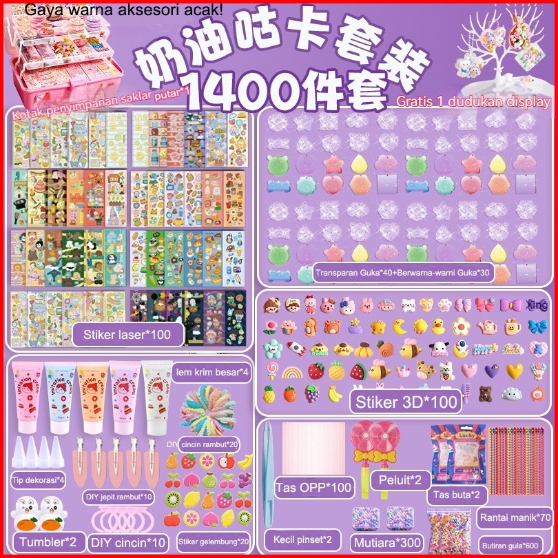 Penjual Lokaldiy 3 Layer Box Goo Card Set 1400pcs Cute Cartoon Sticker Children Hand Tools Kids Toys Material Package Gi
