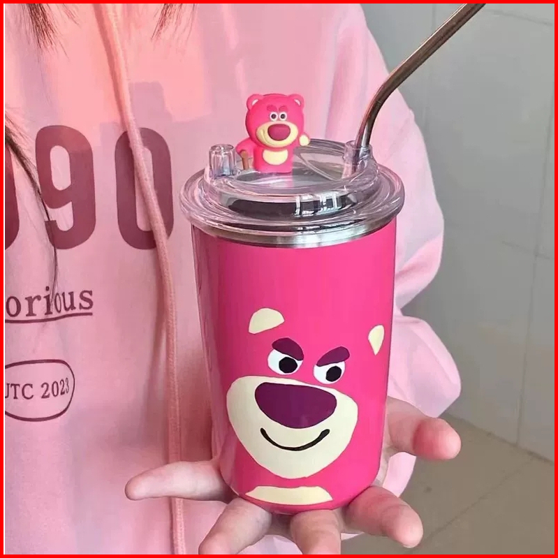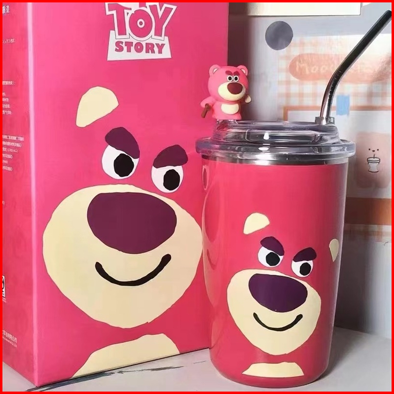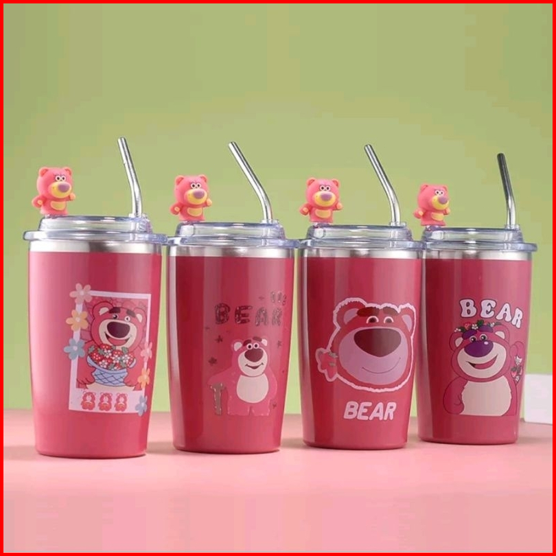 2in1 Lotso Termos Strawberry Beruang Termos Botol Minum Strawberry Bear Termos Lotso Botol Minum 500ml Disney Stainless